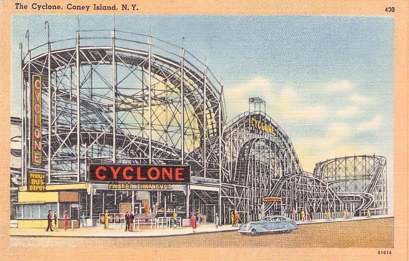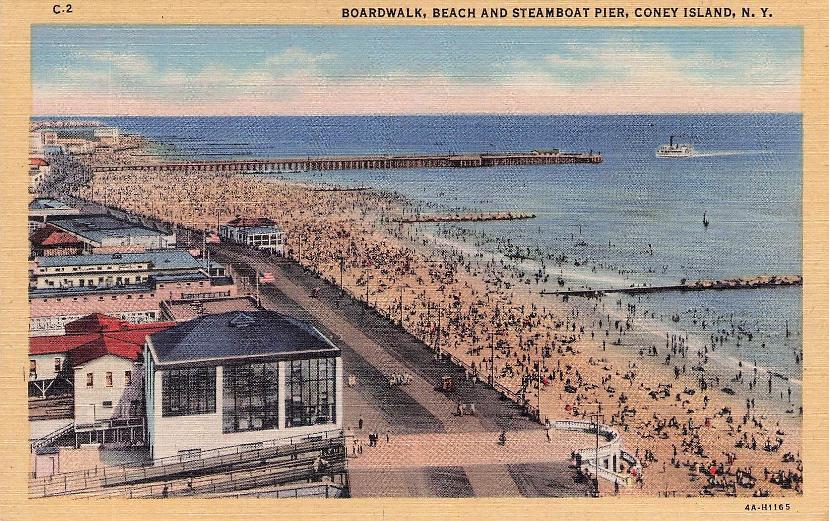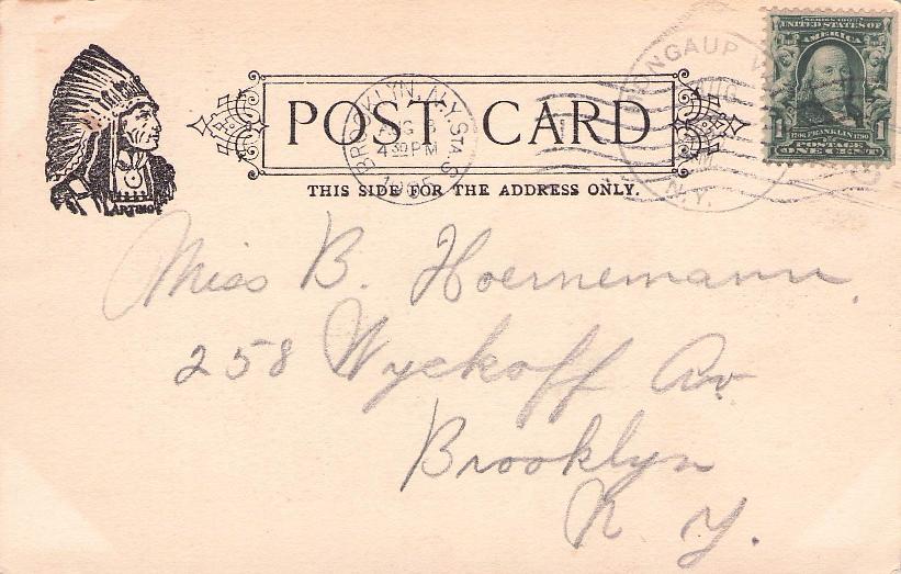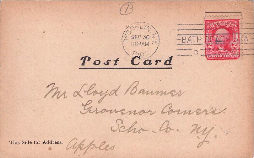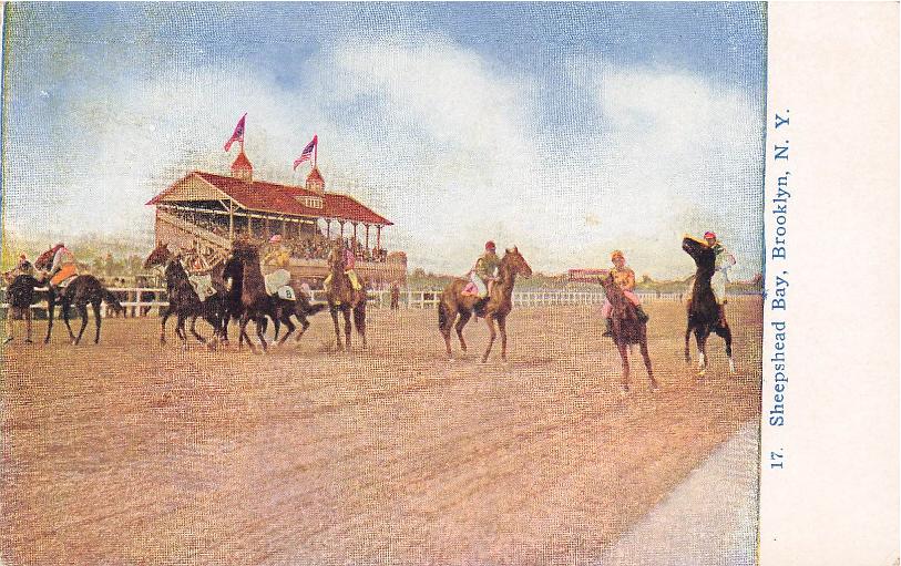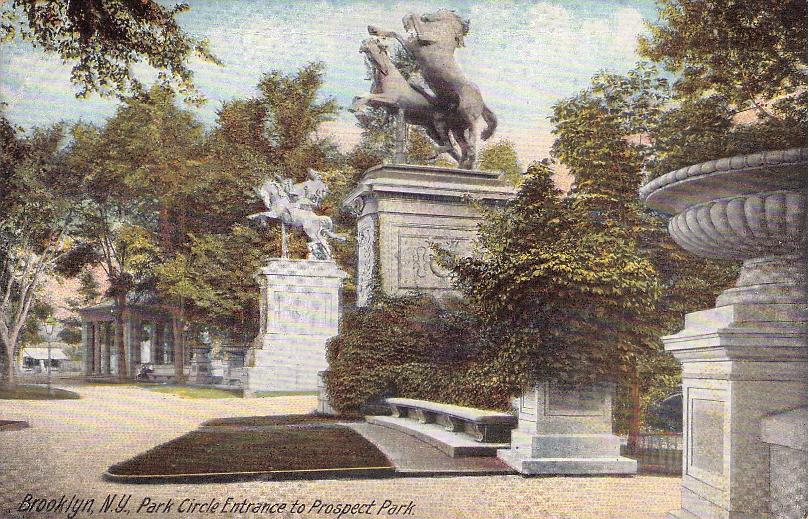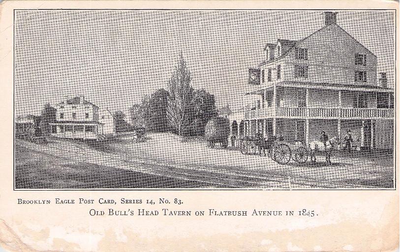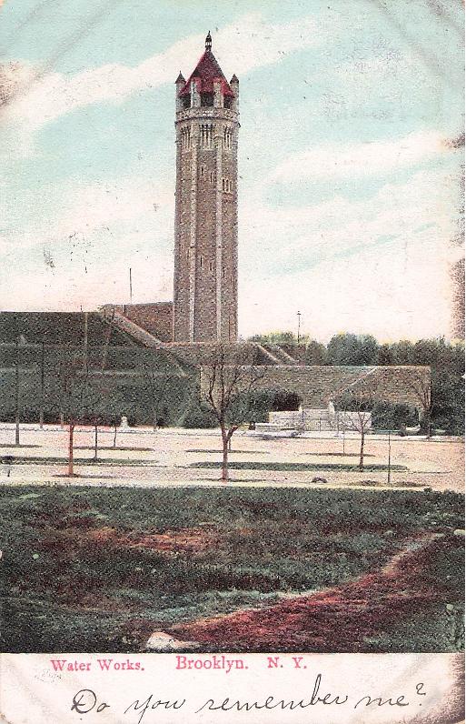 Post cards: Brooklyn Bridge Subway Station (inside & outside views), c.1910; Brooklyn Navy Yard Headquarters (B&W); Coney Island, Boardwalk, beach (linen); Coney Island “The Cyclone” (linen); Coney Island, Ferris Wheel (chrome); Erasmus Hall High School (1909; “New Montauk Theater” (1913); “Old Bull’s Head Tavern on Flatbush Ave. in 1845” [B&W]; Prospect Park entrance c.1910; Prospect Park boathouse (chrome); Sheepshead Bay (horses on race track) c.1910; Water Works (1907).
