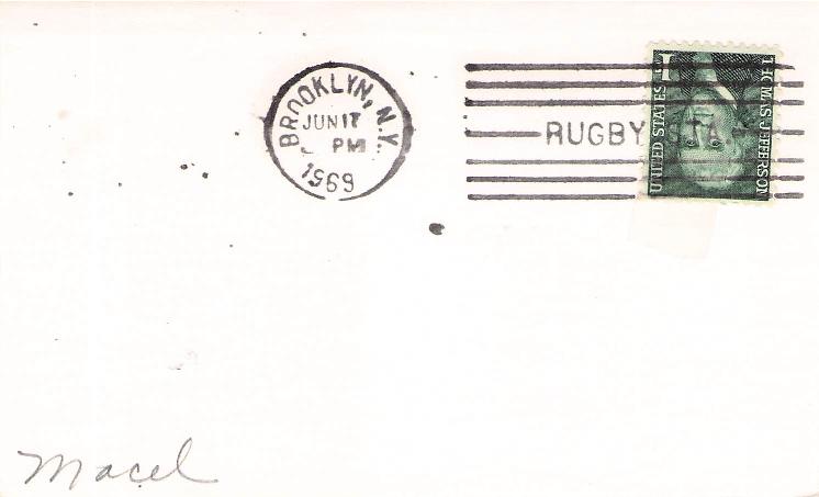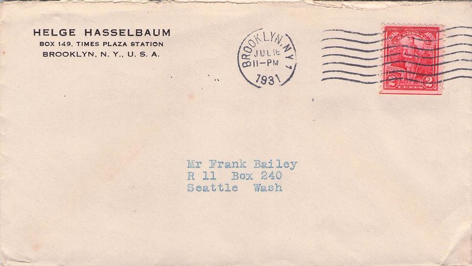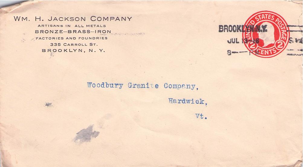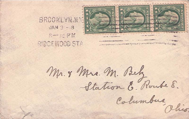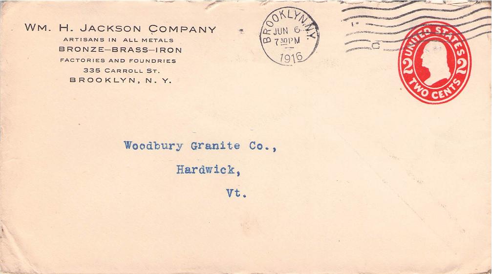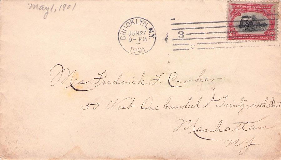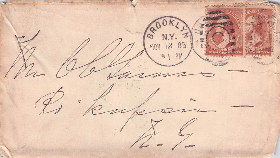 Brooklyn 1870s cds on cover to Germany; 1885 duplex on cover; 1901 machine cancel on cover, 2¢ train stamp; 1915 machine cancel on cover, Wm. Jackson Bronze-Brass-Iron corner; 1916 straight-line on cover, Jackson Co. corner; 1931 machine cancel on cover; 1934 machine cancel, Howard Floor Covering corner; 1934 machine cancel “Register or Insure Valuables,” Westleigh Sportswear corner; 1935 machine slogan “Address Your Mail to Street and Number”; 1966 machine cancel on Postal Card; 1971 machine slogan “Help Goodwill Industries” on cover; 1973 4-bar on cover