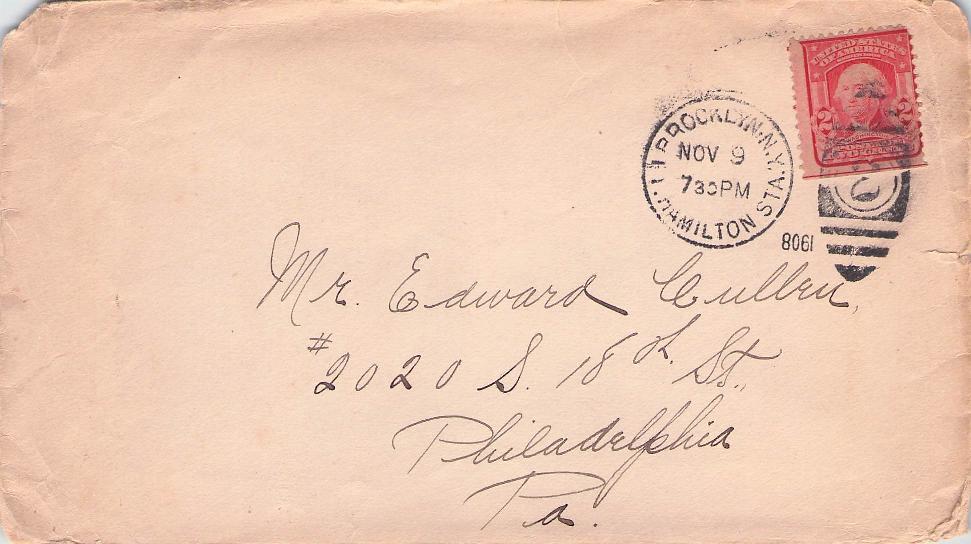 Ft. Hamilton Sta. 1908 date-out duplex on cover