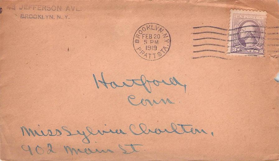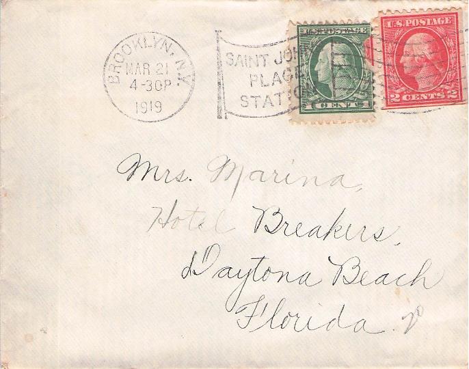 Saint Johns Place Sta. 1919 Flag cancel on cover