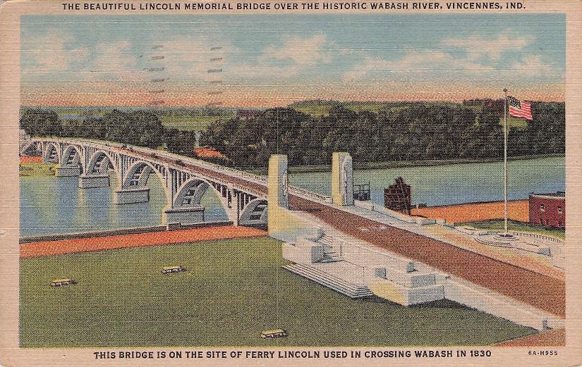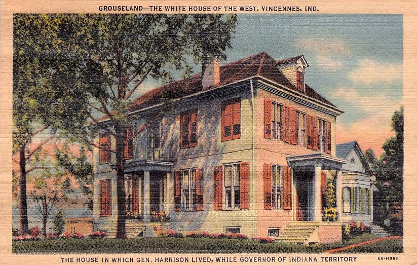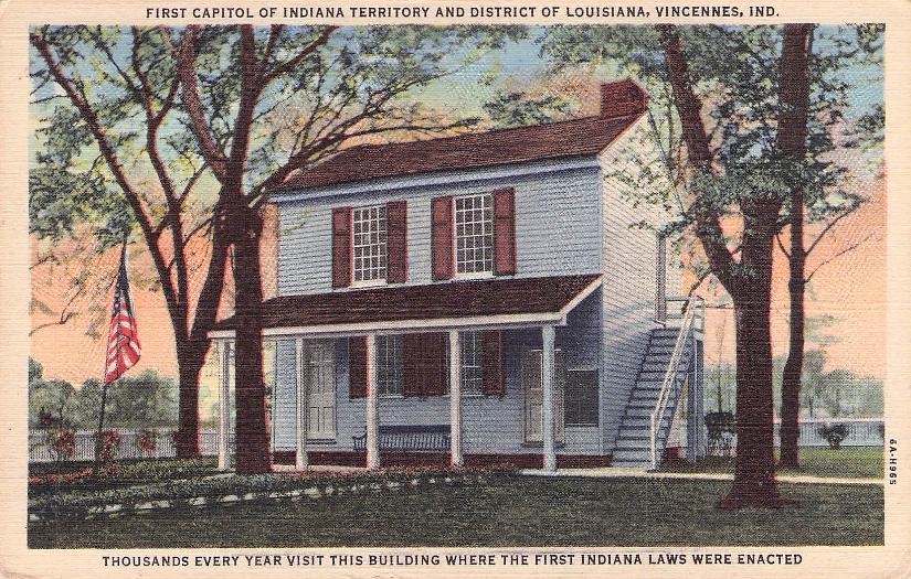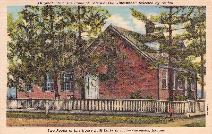 Post Cards: Brock Motel, water tower [B&W]; Holiday Inn dining area [chrome]; Ste. Honore Place, Market Street Station [chrome]; Court House and Soldier’s Monument [2 linen views]; Vincennes University Administration building [chrome]; The Cathedral [3 views, one B&W, two chrome]; Clark Memorial [linen]; First Indiana Territory Capitol building [linen]; Grouseland [2 views, one linen, one chrome]; “Home of Alice” [2 views, one B&W, one linen]; Lincoln Bridge [linen]