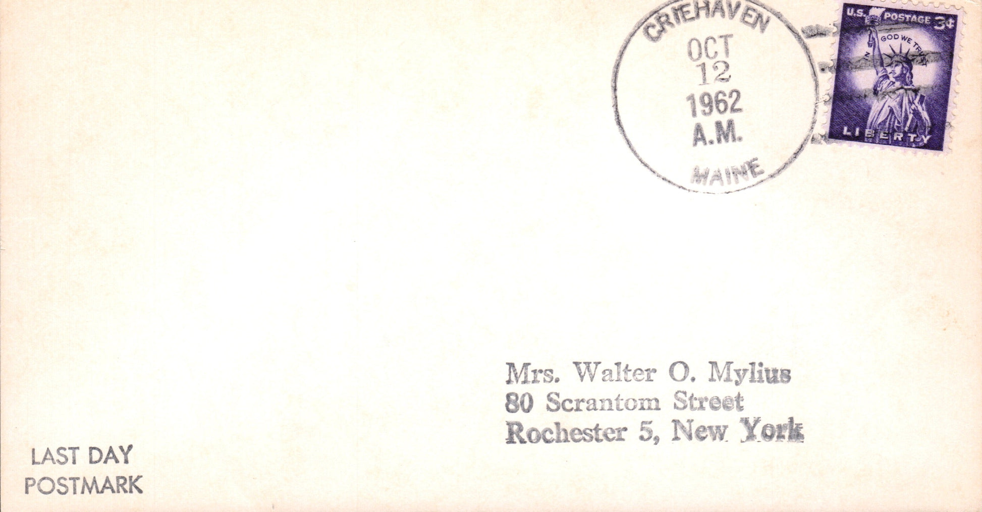 Criehaven (1894/1962) 1962 4-bar on LD cover-sized card