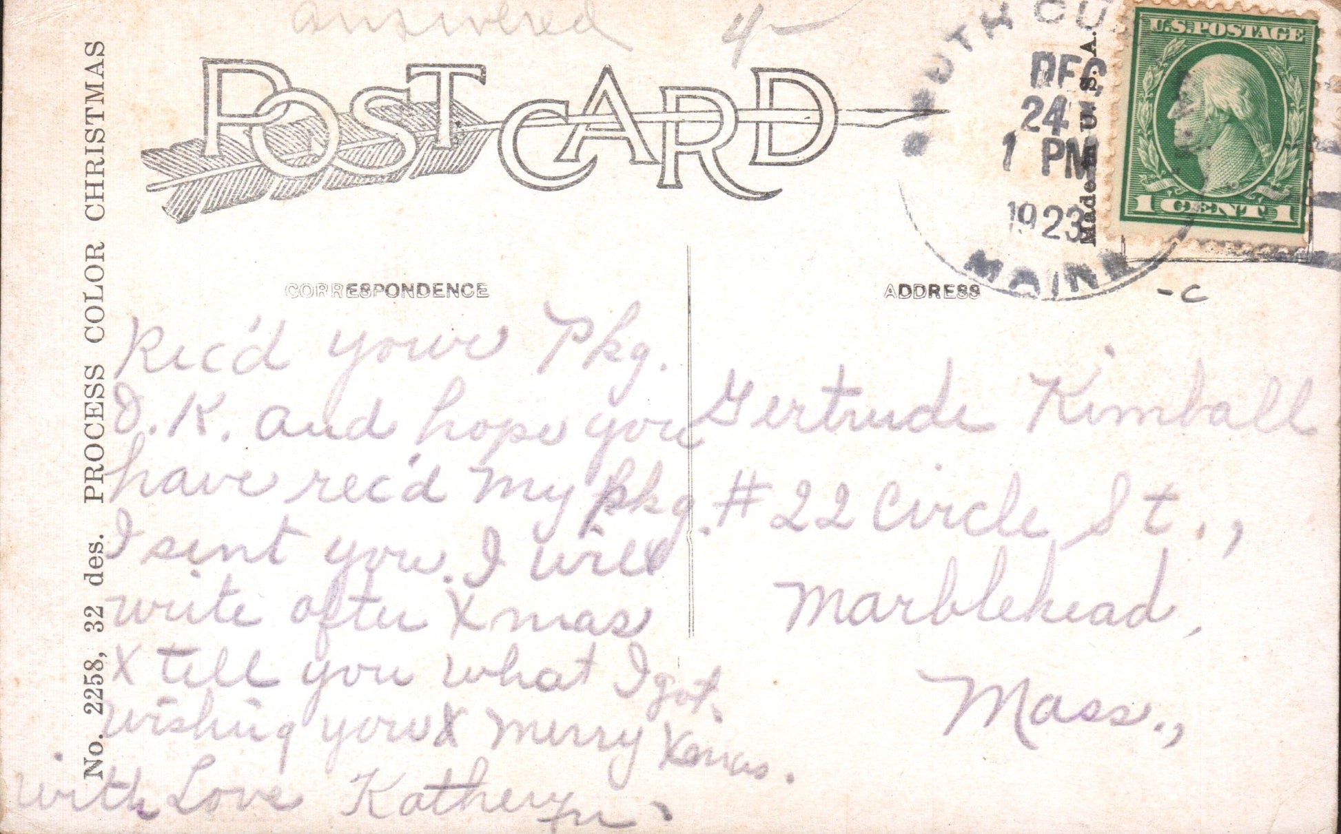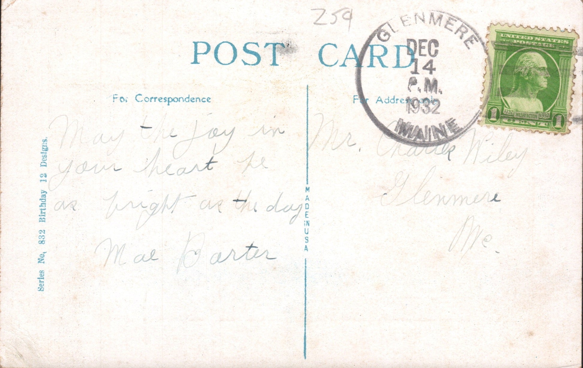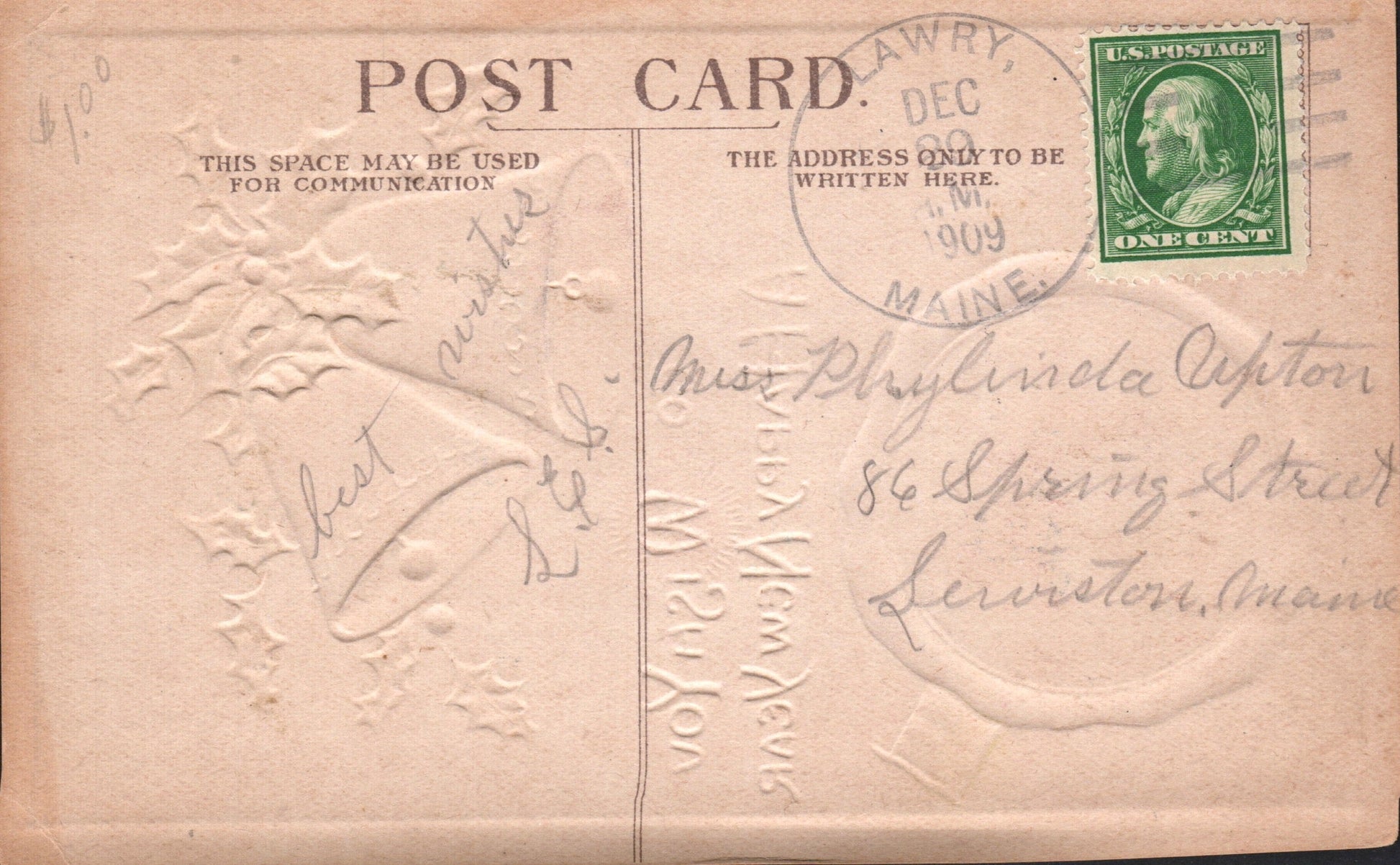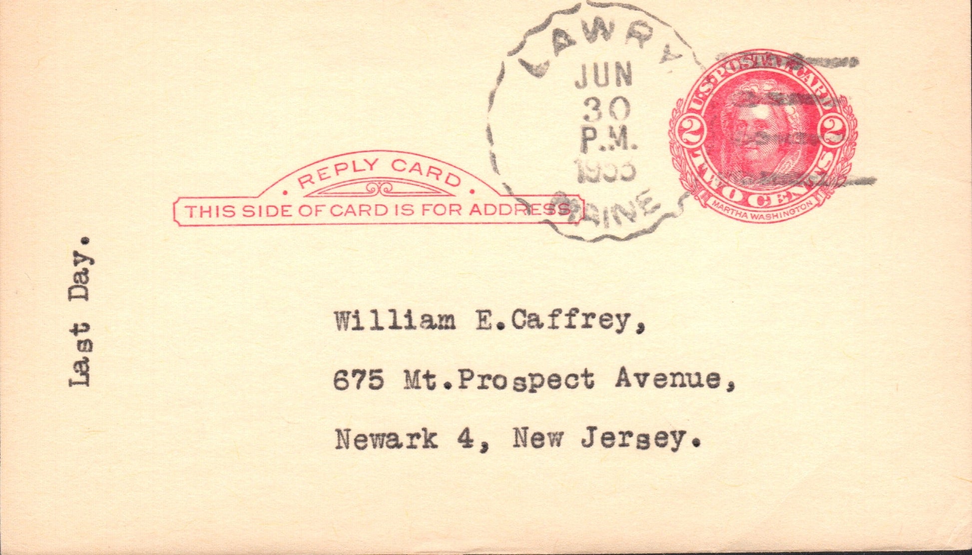Lawry (1894-1953) 1921 on post card, 1955 4-bar on LD Postal card