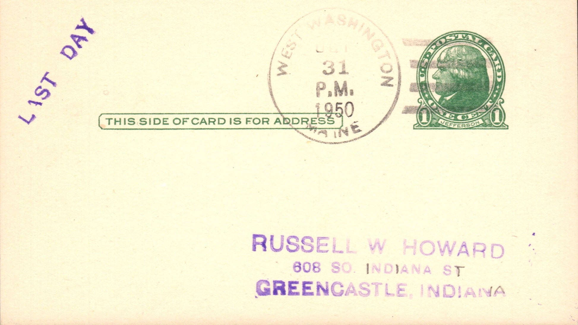 West Washington (1851-1950) light 1950 4-bar on LD.Postal Card