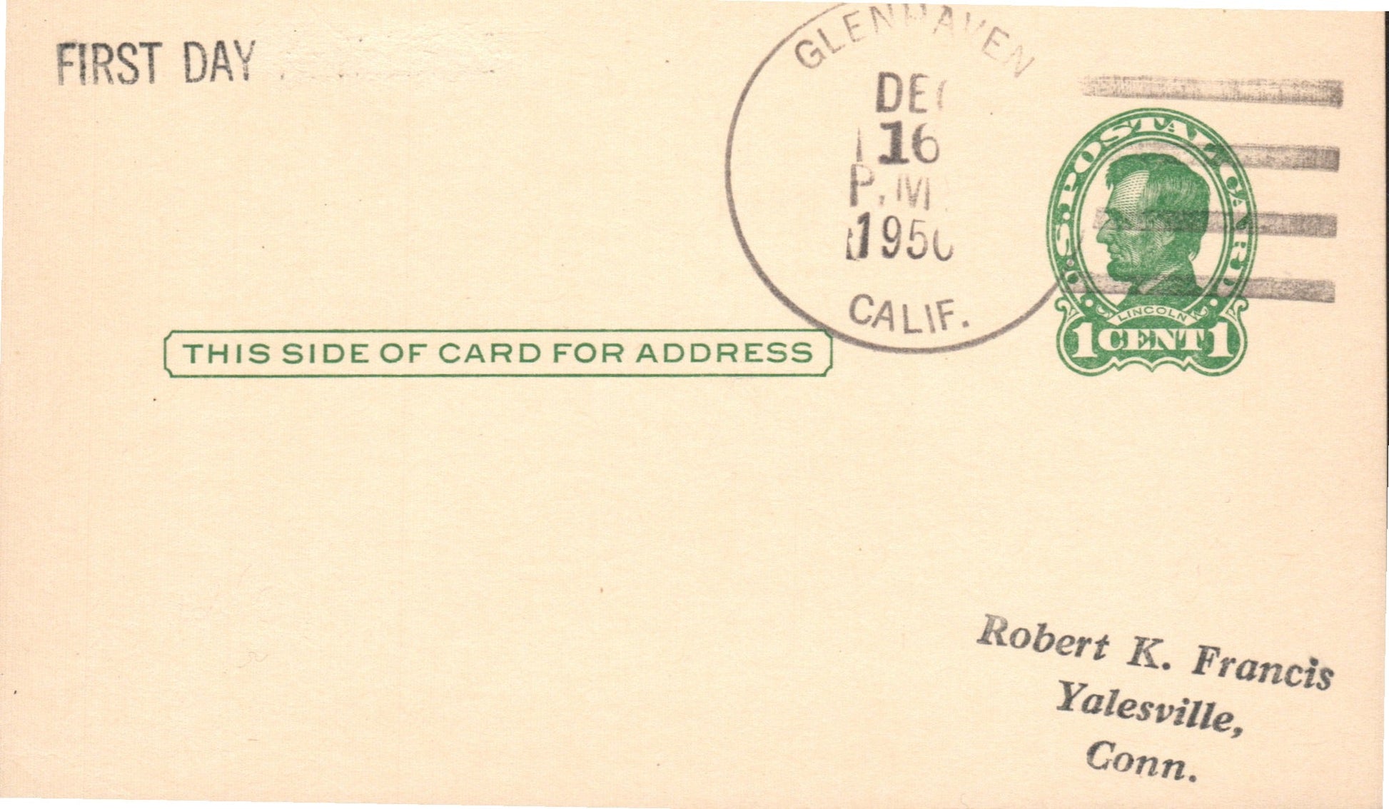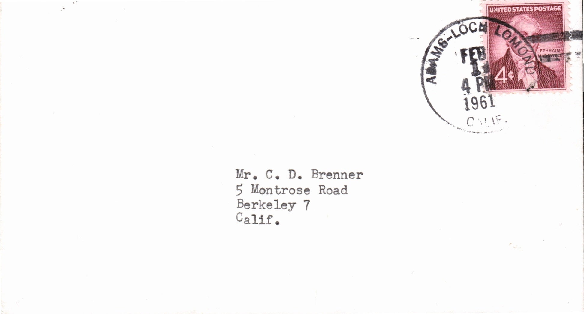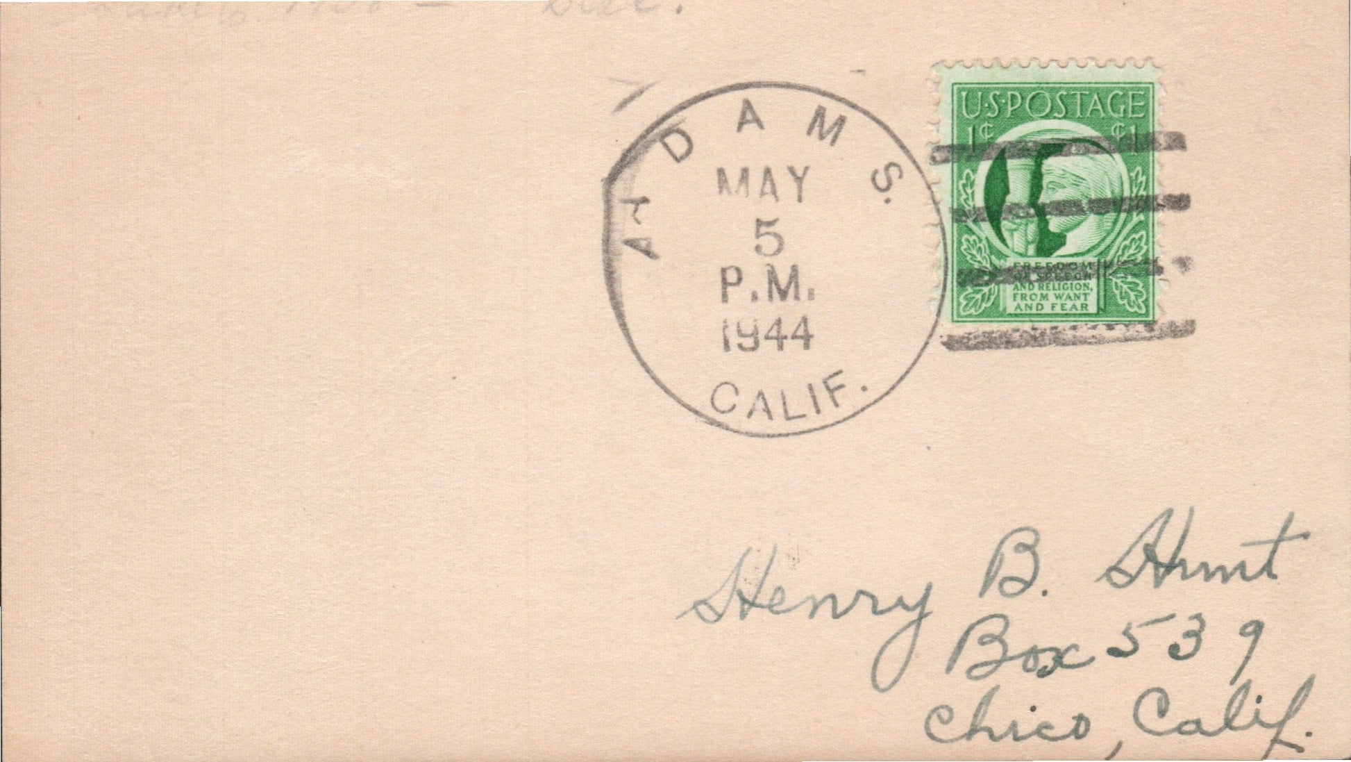 Adams (1908-1960) 1913? 4-bar on post card; 1944 4-bar on 3x5 card