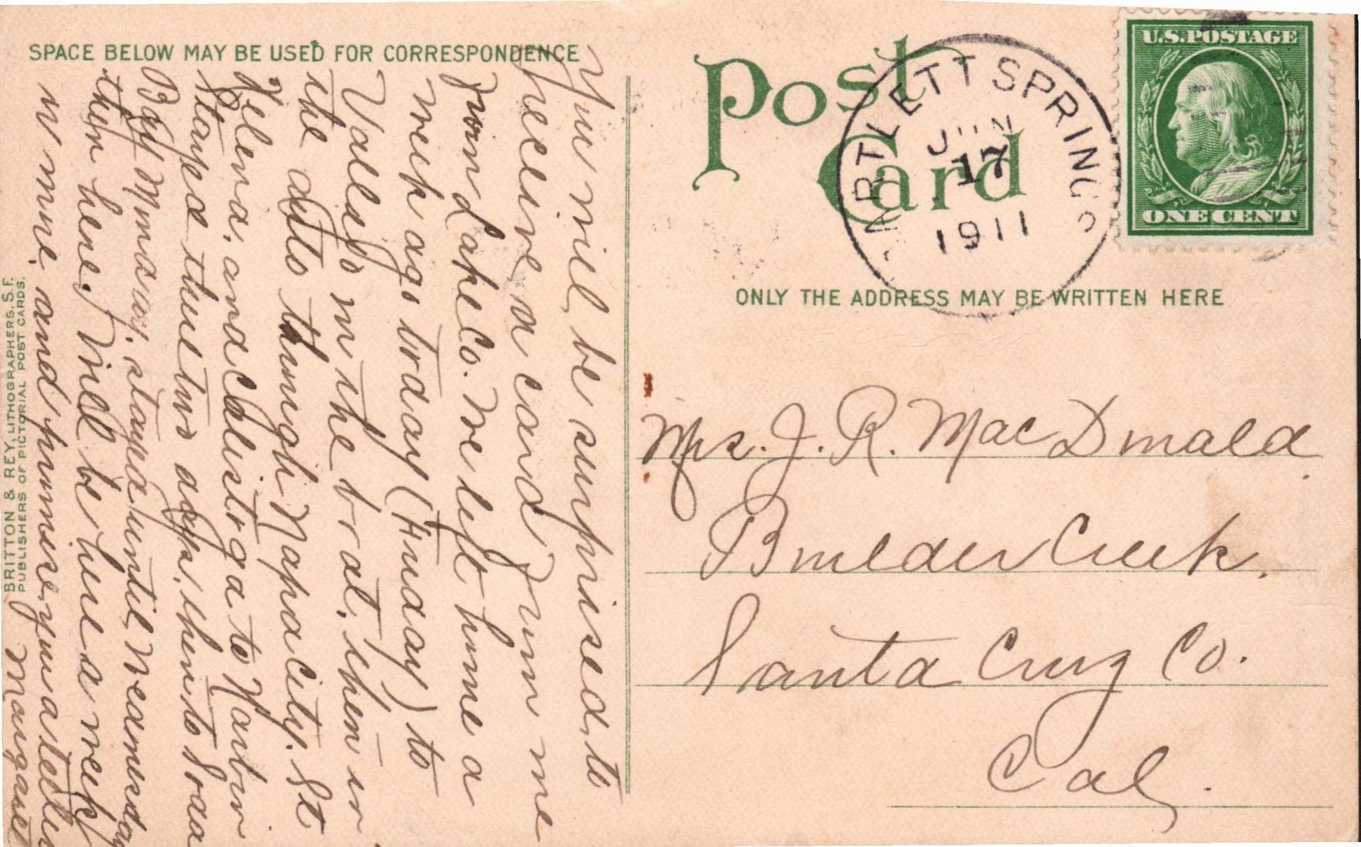 Bartlett Springs (1873-1935) 1911 duplex on post card [view of spring]