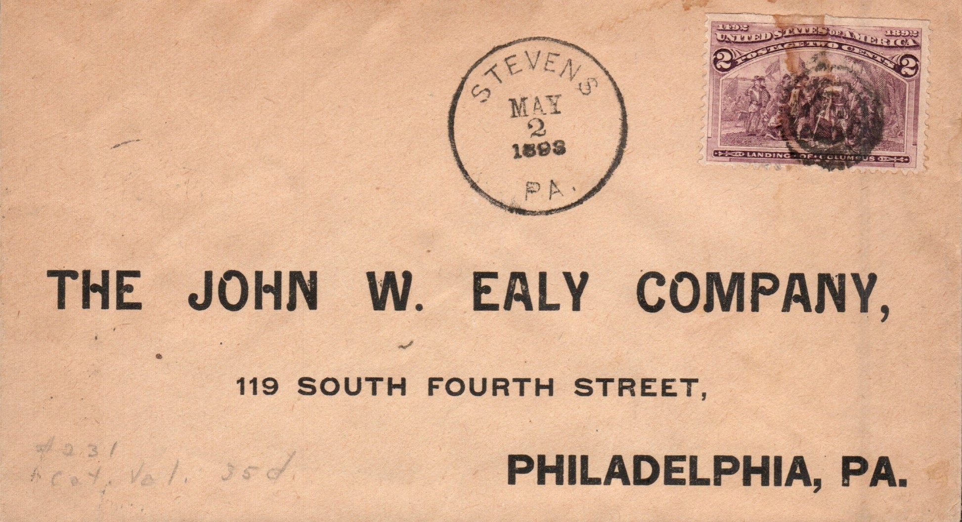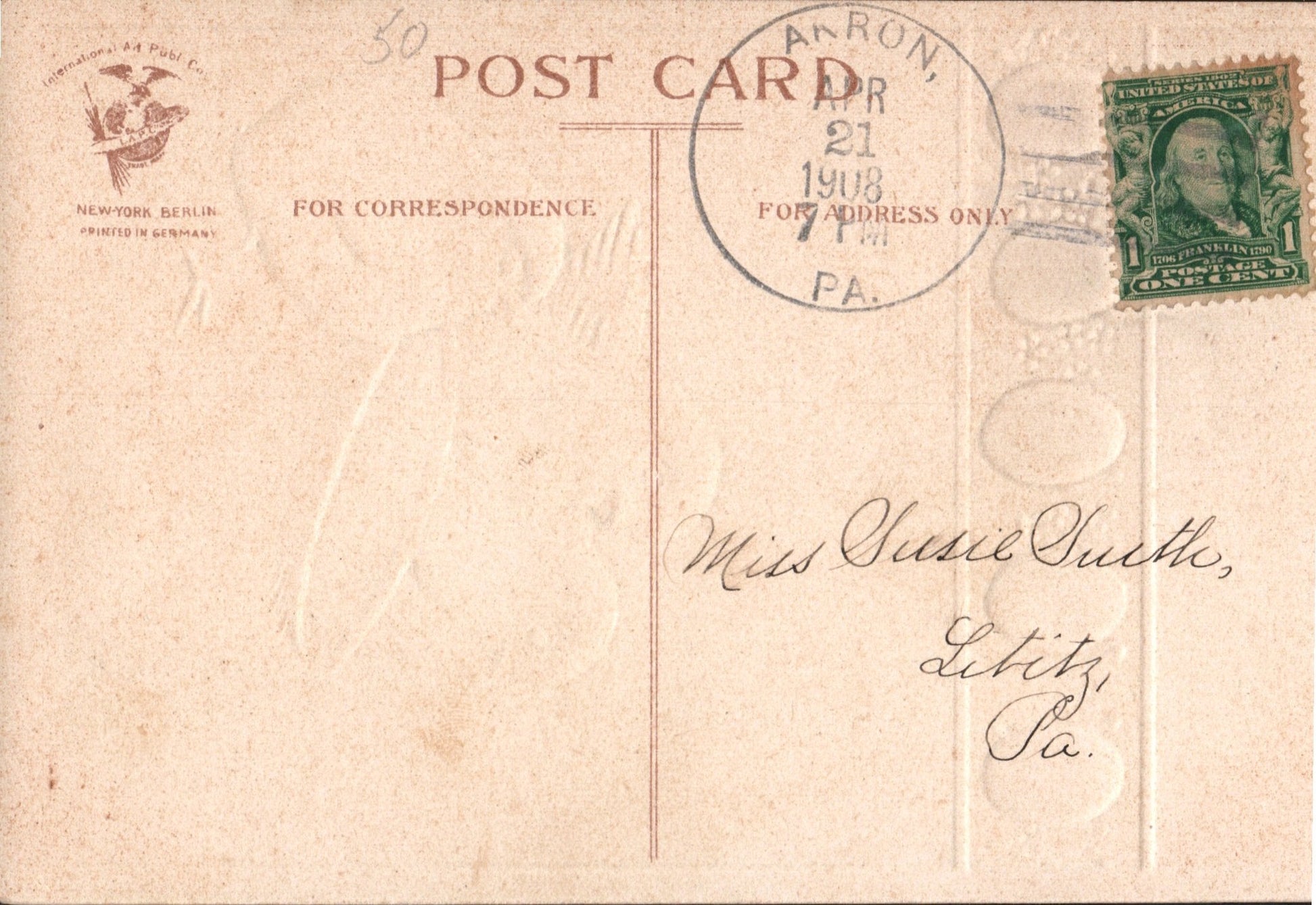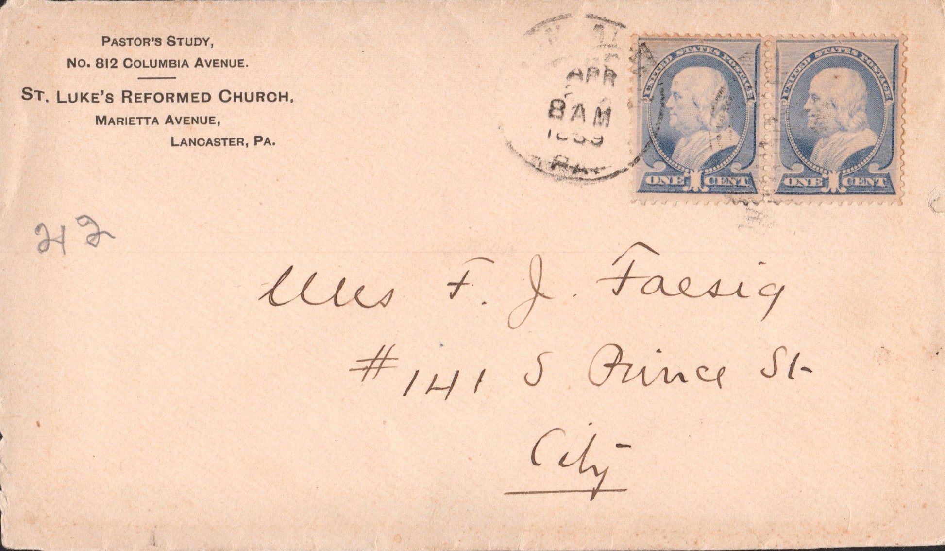 Lititz 1907 duplex on cover, “Farmers’ National Bank” corner; poor 1949 machine cancel on cover