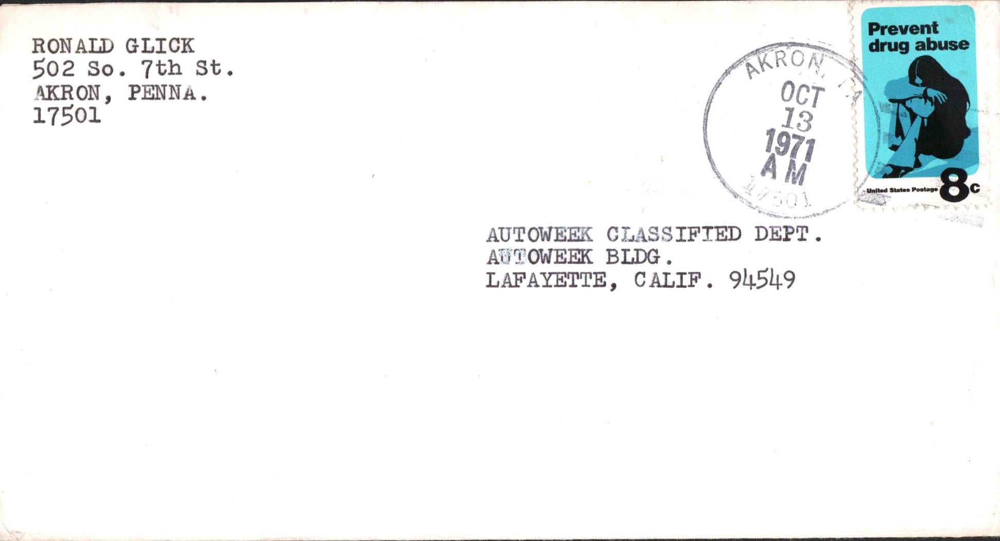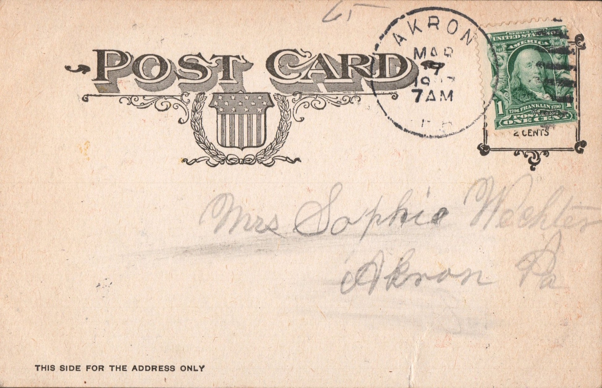 Akron 190? cds on post card; 1908 4-bar on post card; 1971 4-bar on cover