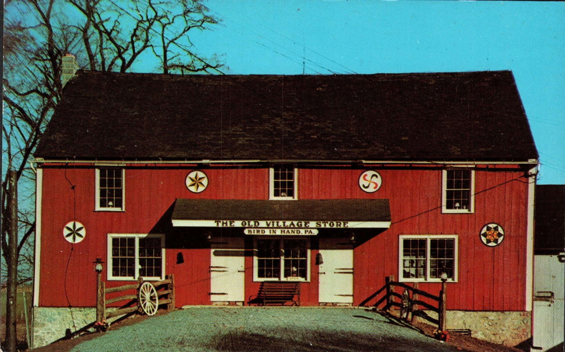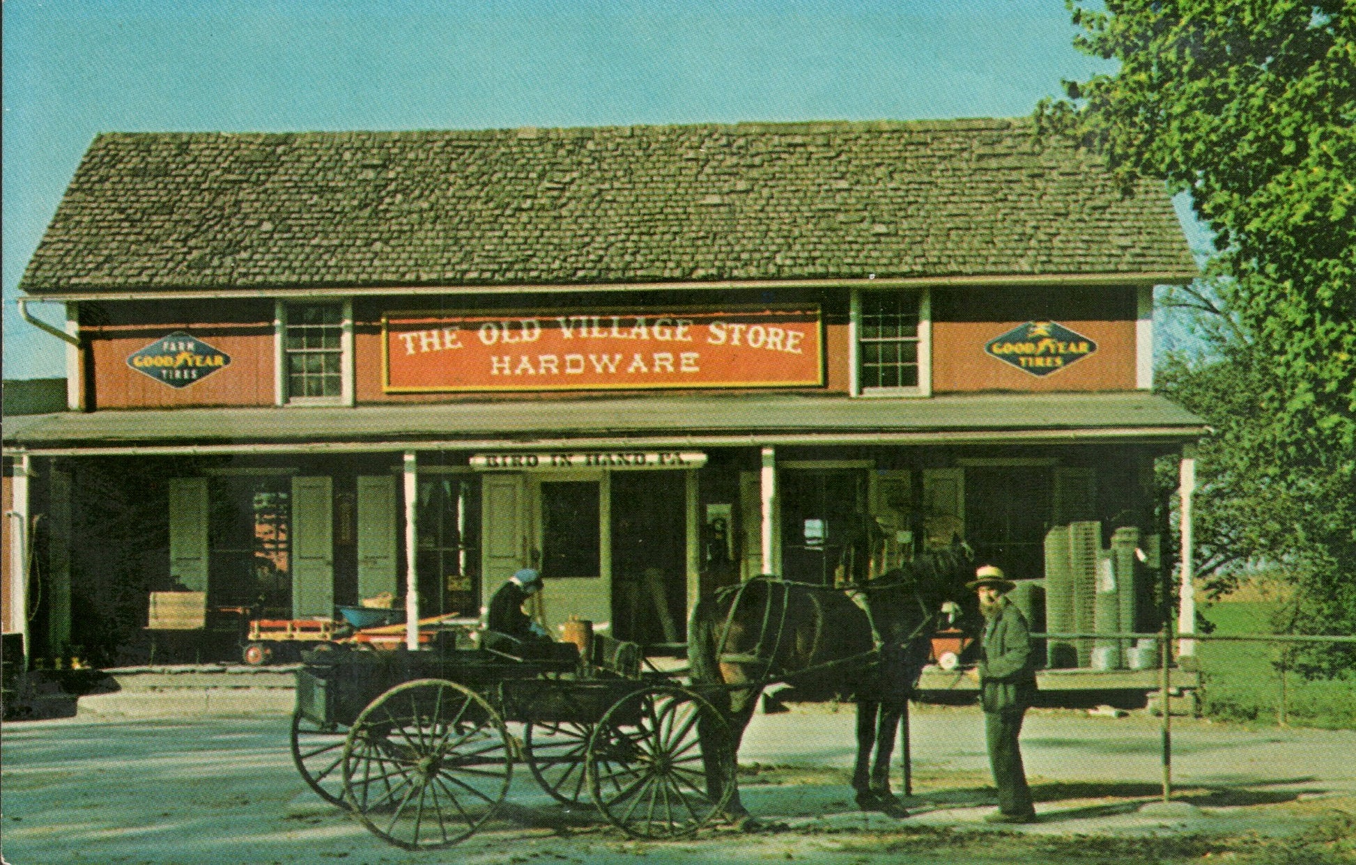 Post cards: Old Village Store (3 chrome views, one with bent corner)