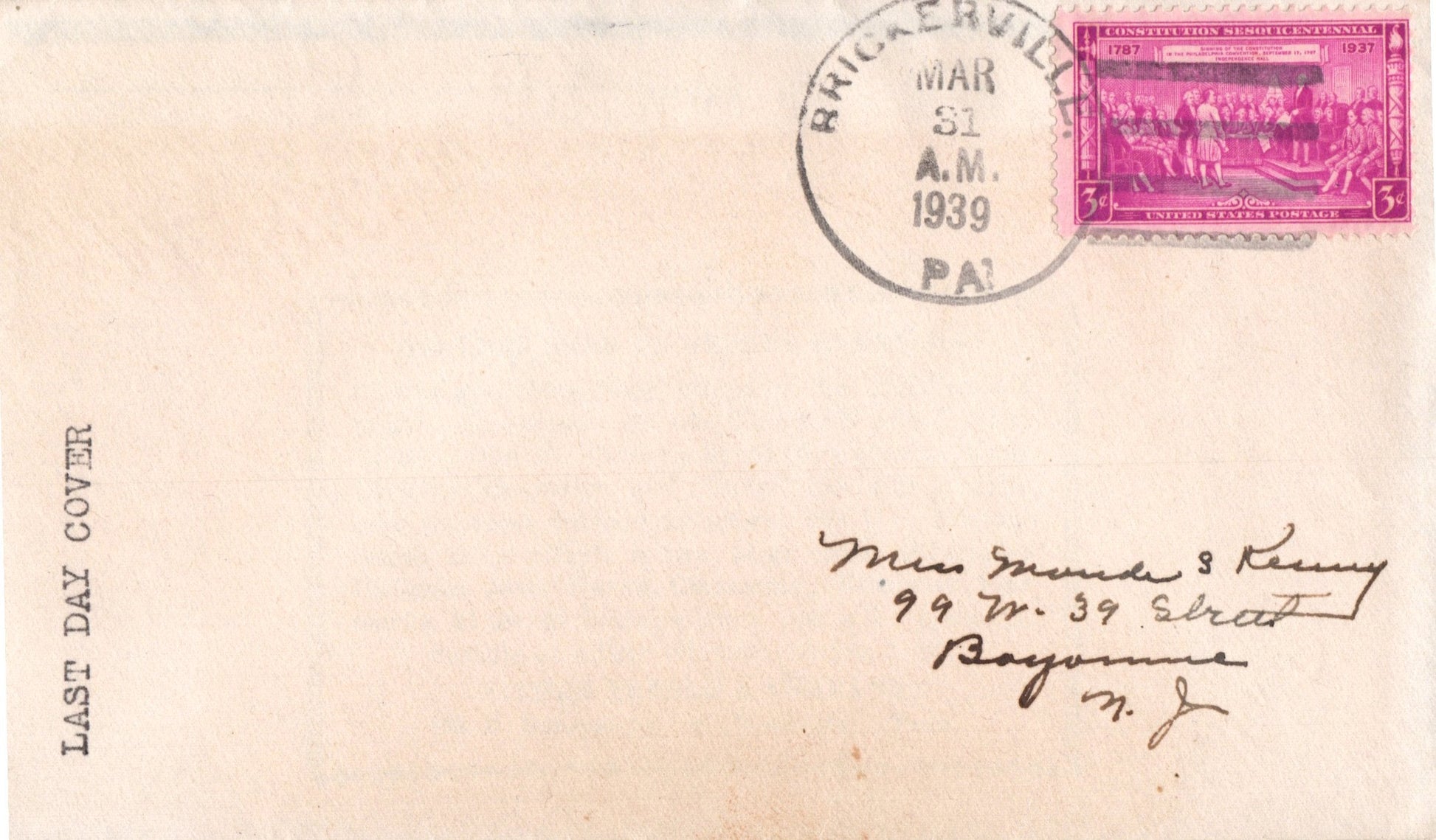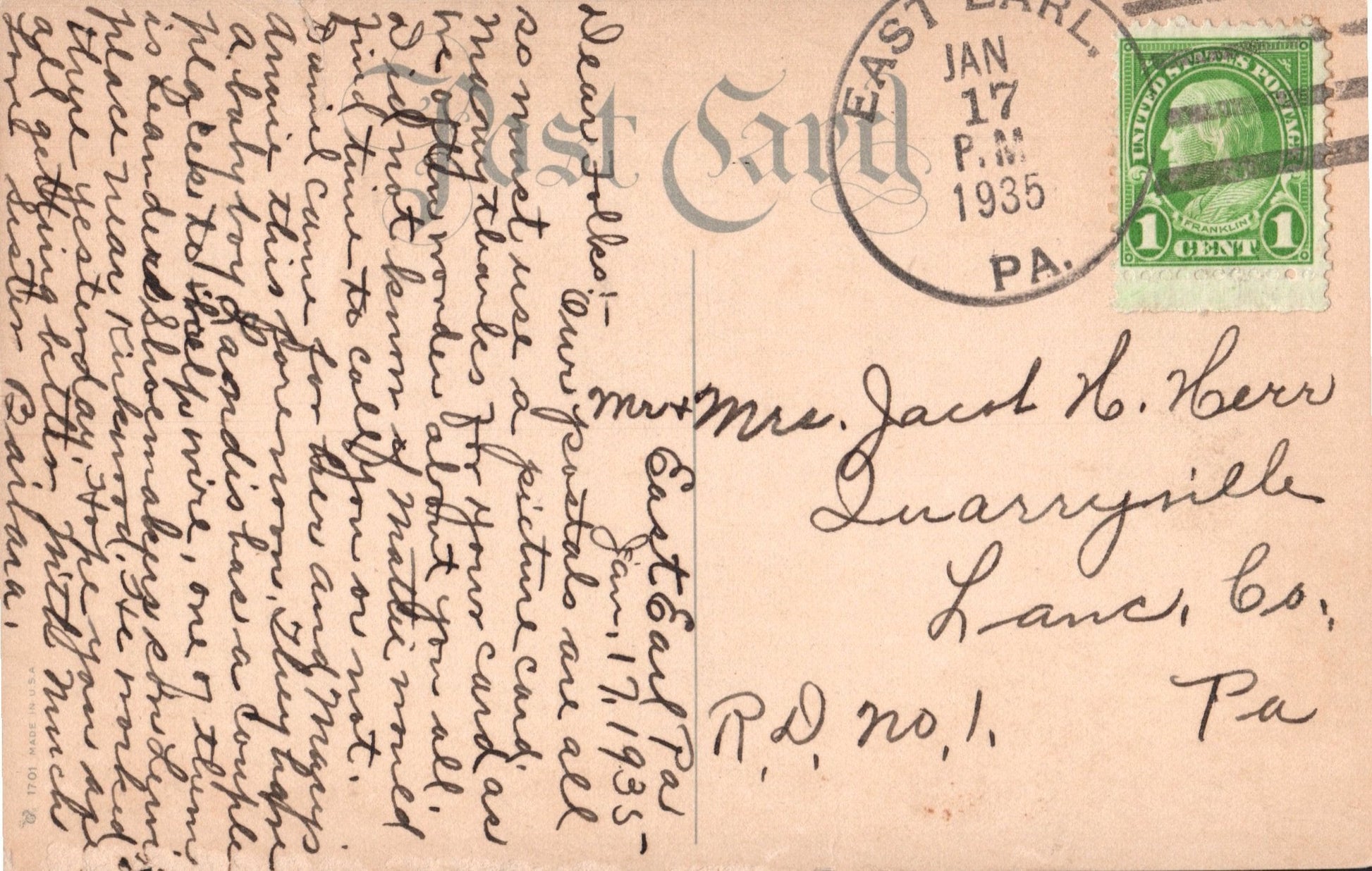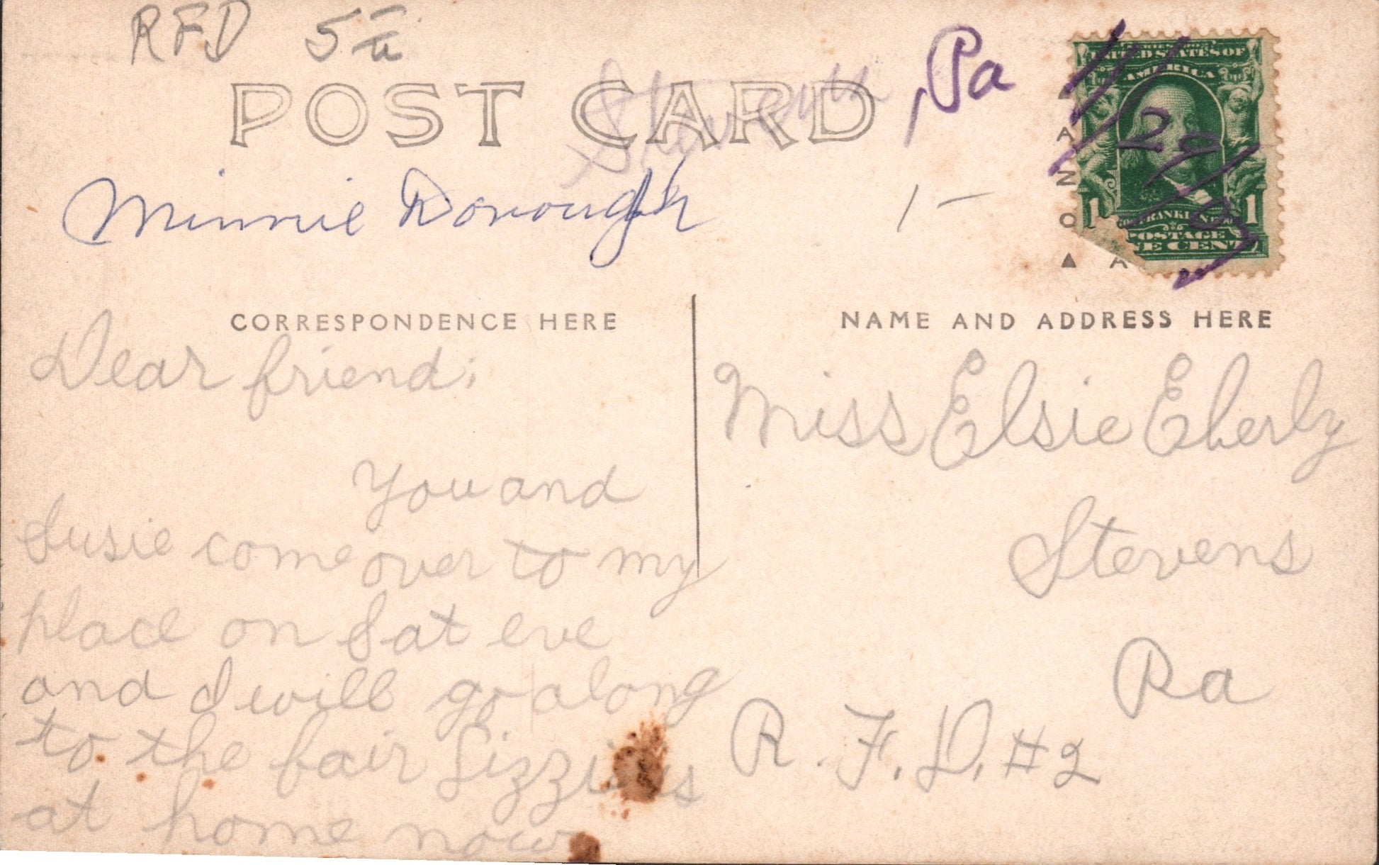 Brickersville (1830-1939) 1909 4-bar on post card; 1912 Doane 3 as Rec’d mark on post card, view of prison; 1959 4-bar on LD cover