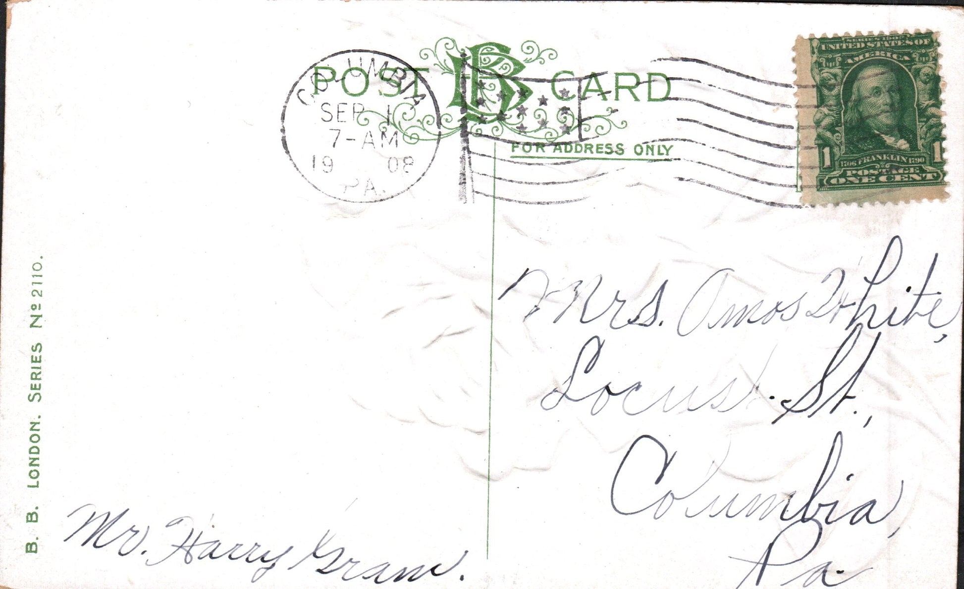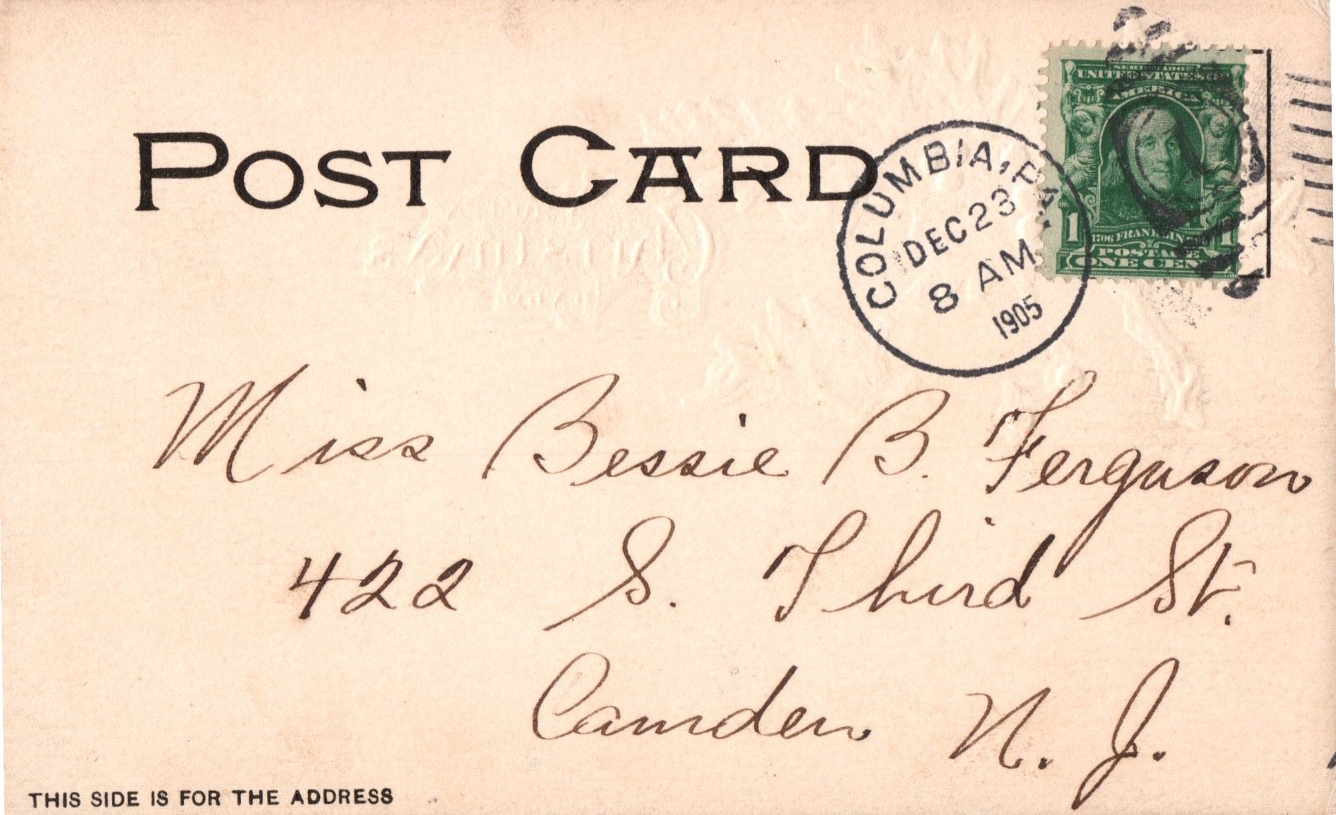 Columbia 1905 duplex on post card; 1908 Flag cancel on post card.