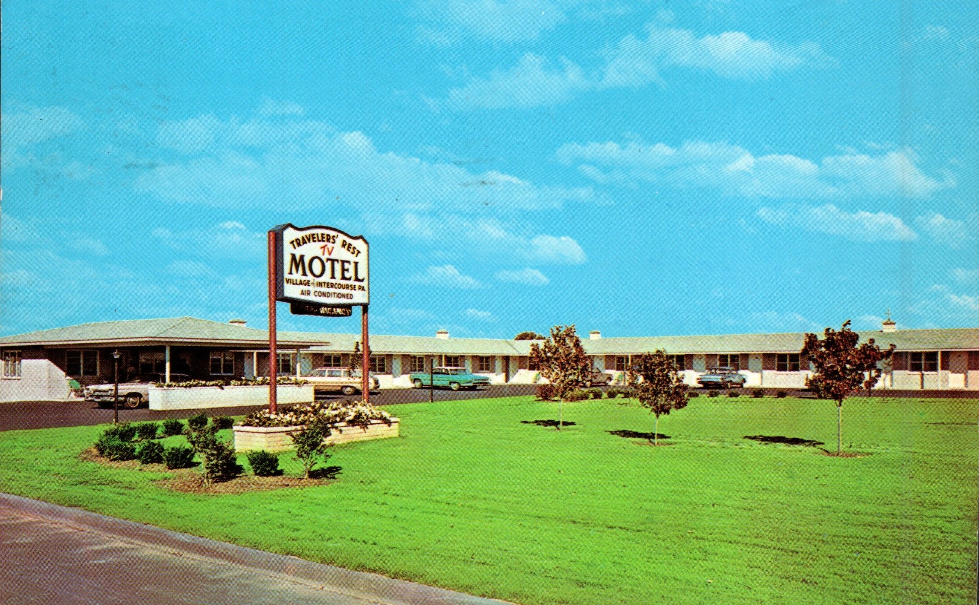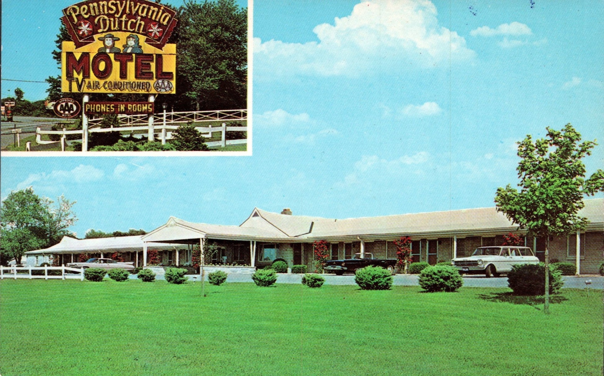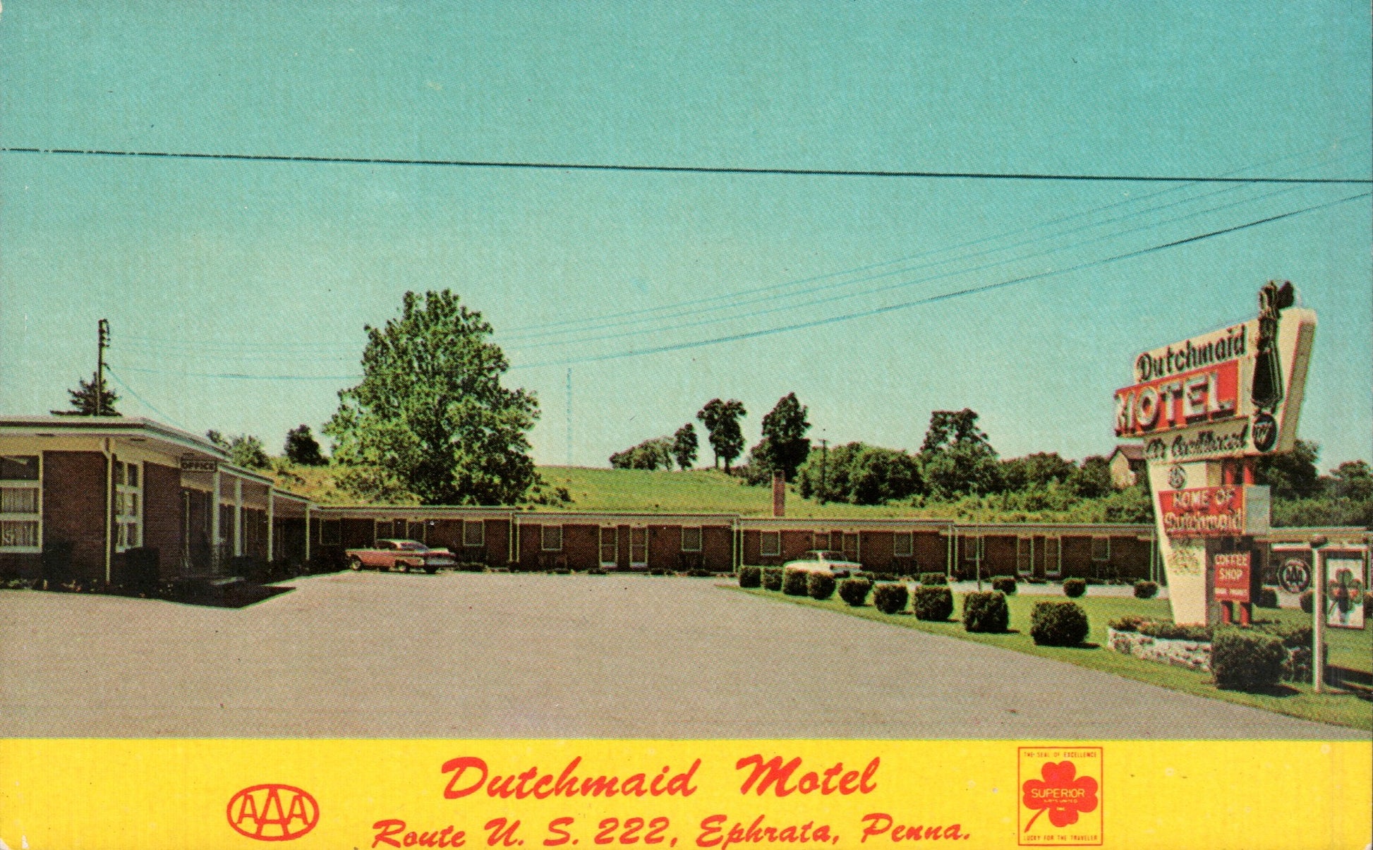 Post cards: Dutchmaid Motel [chrome]; Pennsylvania Dutch Motel [chrome]; Foodergong Lodge [chrome]; Ephrata Cloister [2 chrome views]