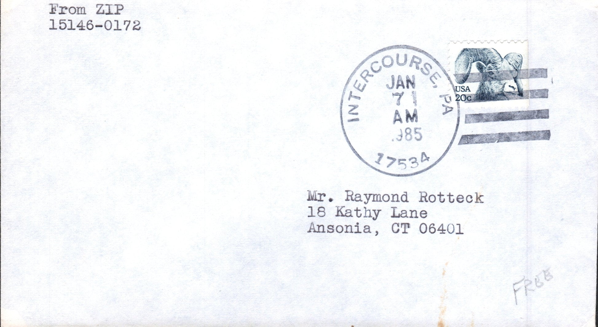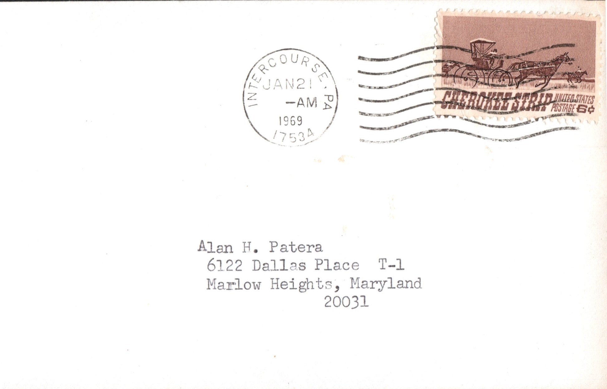Intercourse 1969 machine cancel on cover; 1985 4-bar on cover.