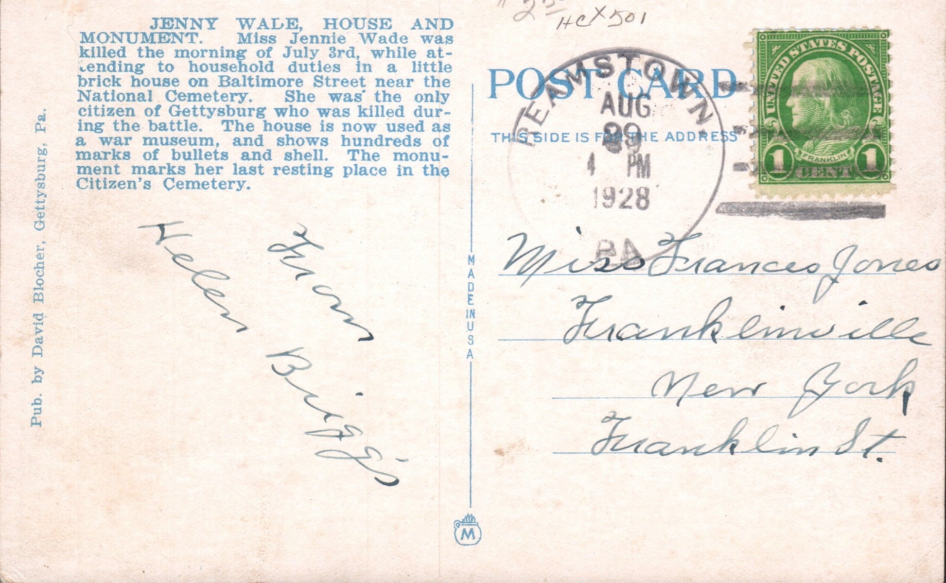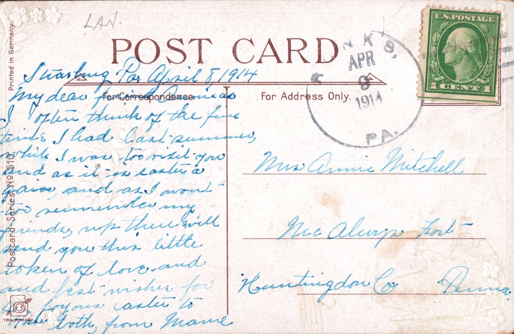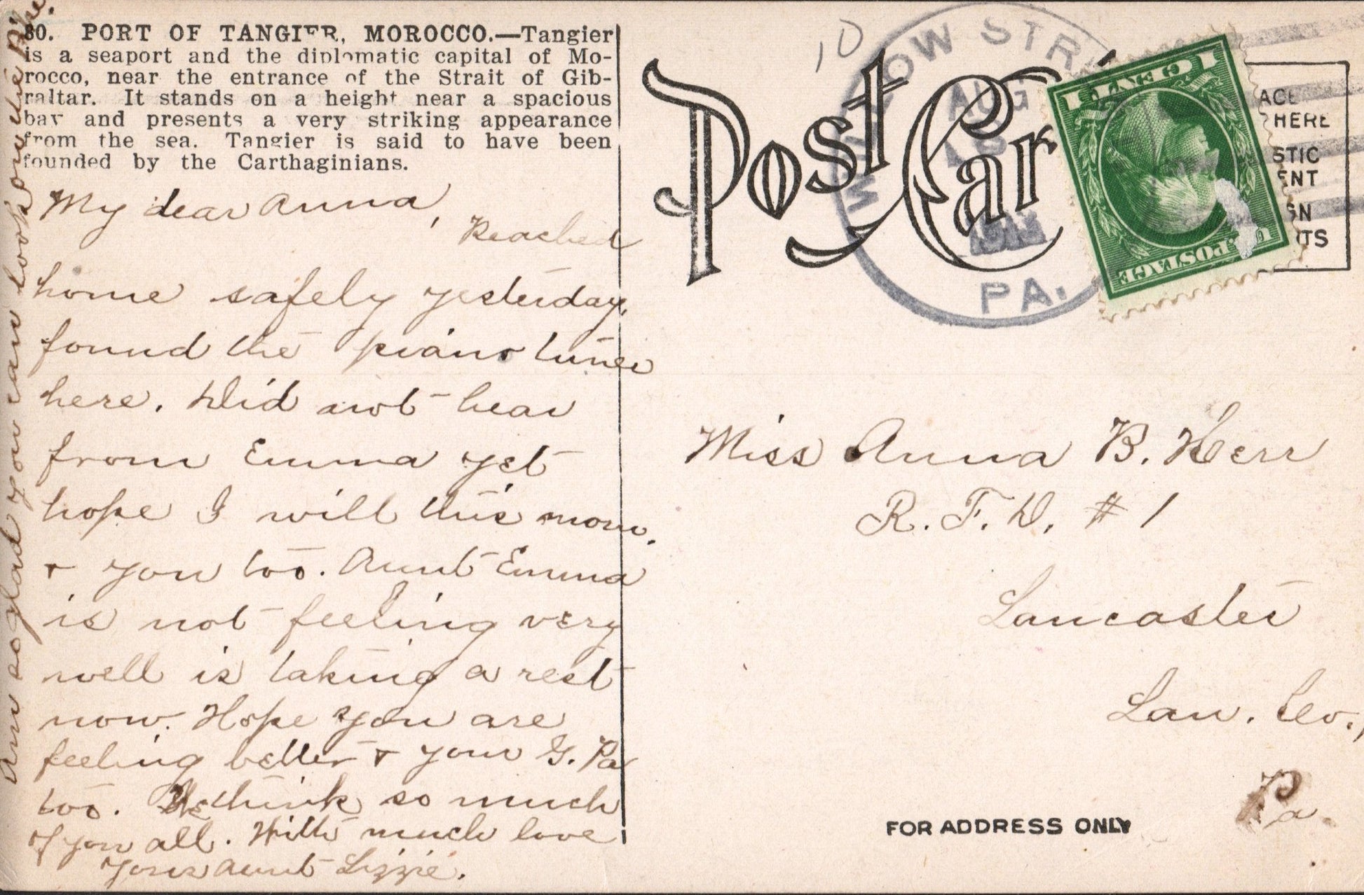 Post cards: City Hall [c.1925]; “Lutheran Church of the Holy Trinity” [chrome]; “Old Time Home Made Martha Washington Candies” [c.1910?]; “Wheatland, Home of President James Buchanan” [linen]; Miller’s Smorgasbord [chrome]; “The Amish Farm & House” [chrome]; “Ancient Abbyville Mill” [sepia, c.1910]