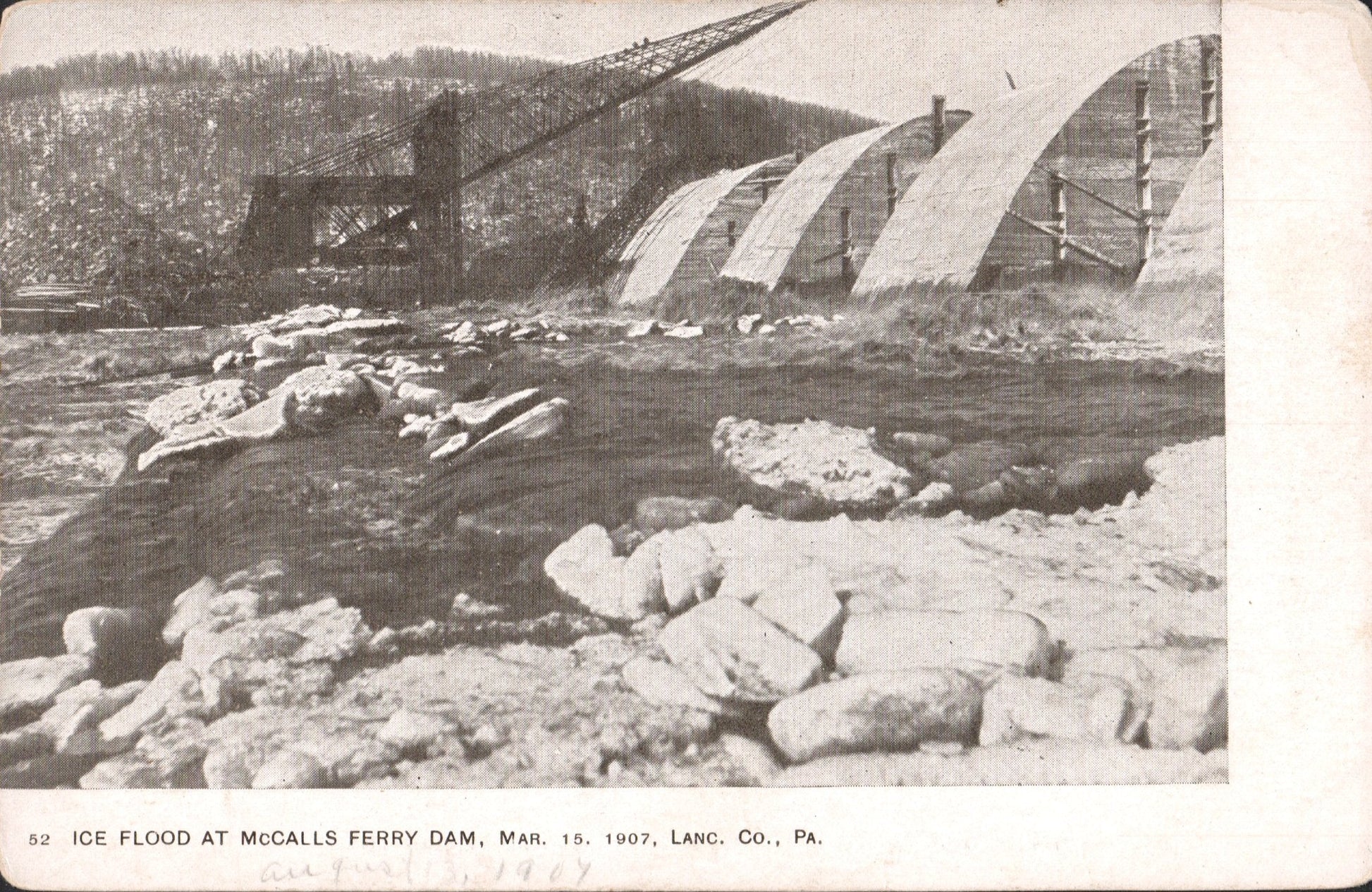 Post card: “Ice Flood at McCalls Ferry Dam Mar. 15, 1907” [B&W]