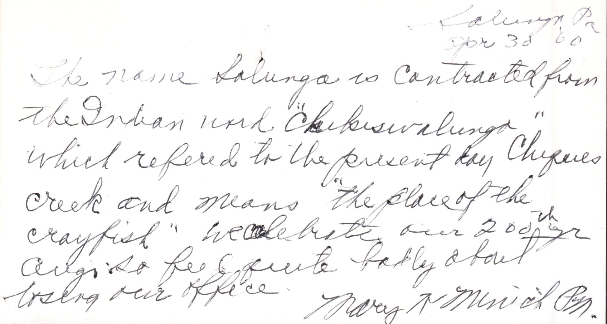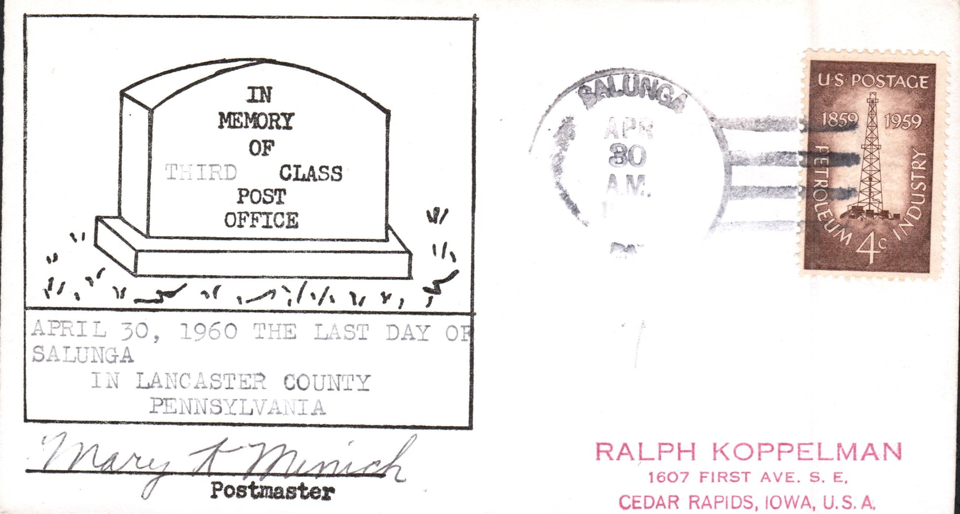 Salunga (1850-1960) 1960 4-bar on cacheted LD cover, PM autograph & info card