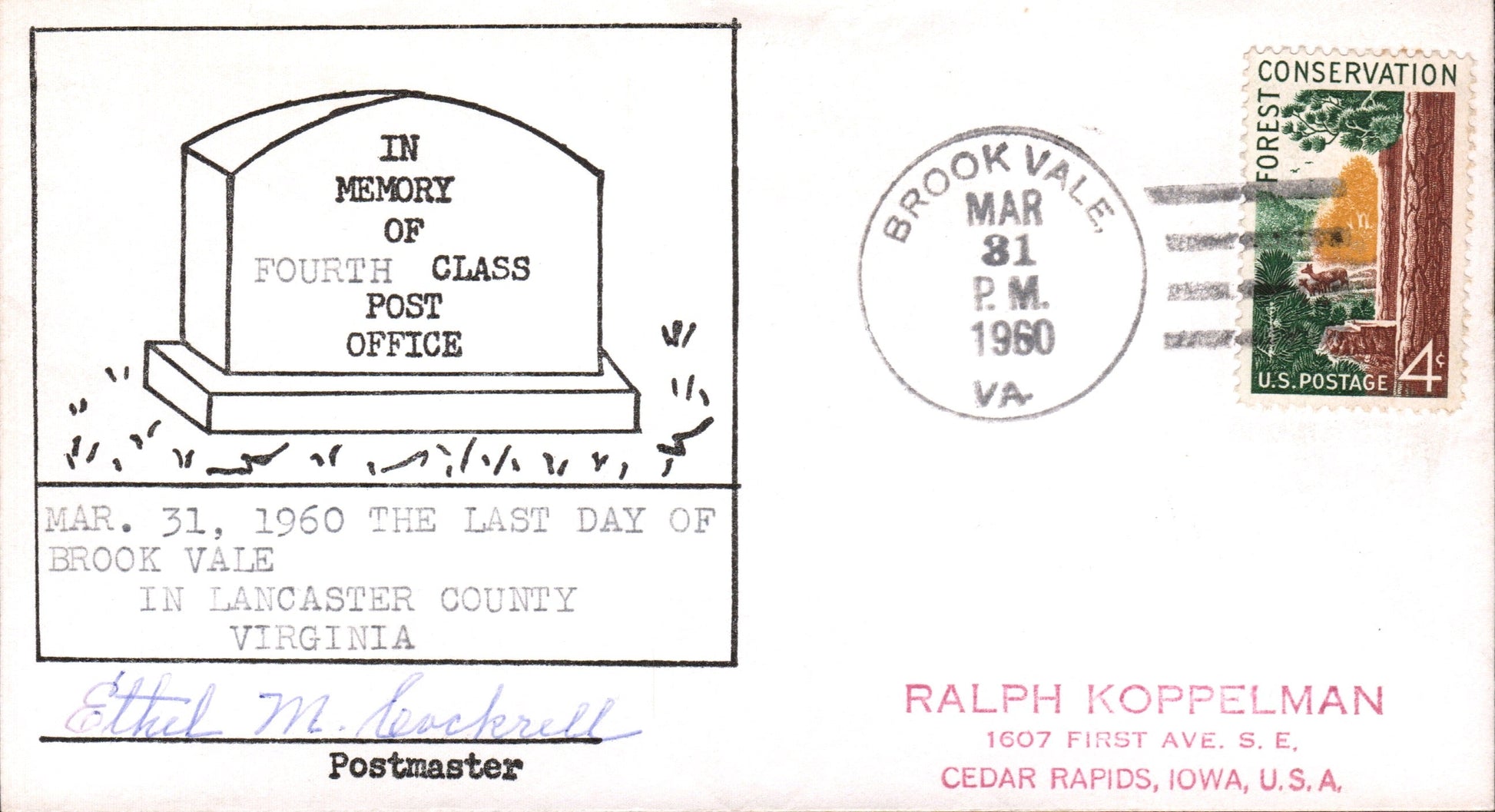 - Brook Vale (1916-1960) 1960 4-bar on cacheted LD cover, PM autograph