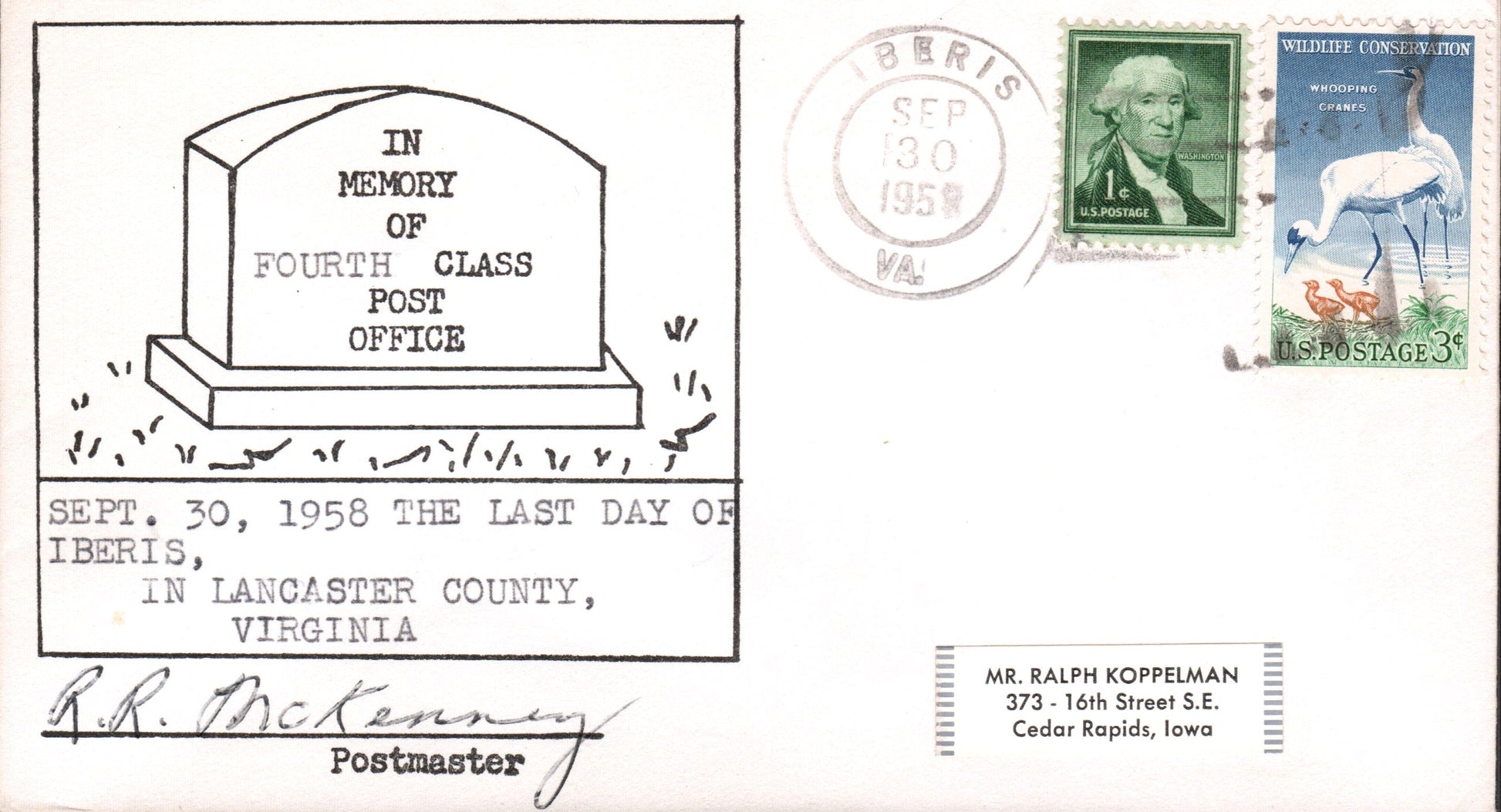 - Iberis (1900-1958) 1958 round dater on cacheted LD cover, PM autograph