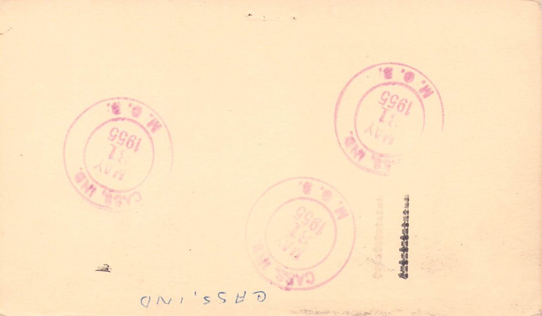 Kitchel 1951 4-bar on LD postal card, PM autograph on back