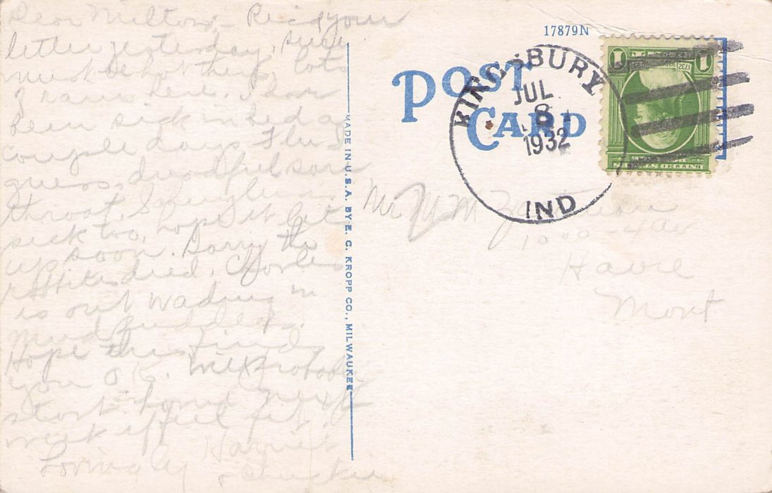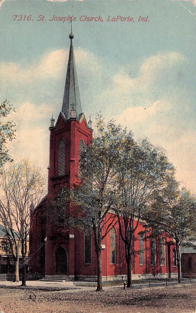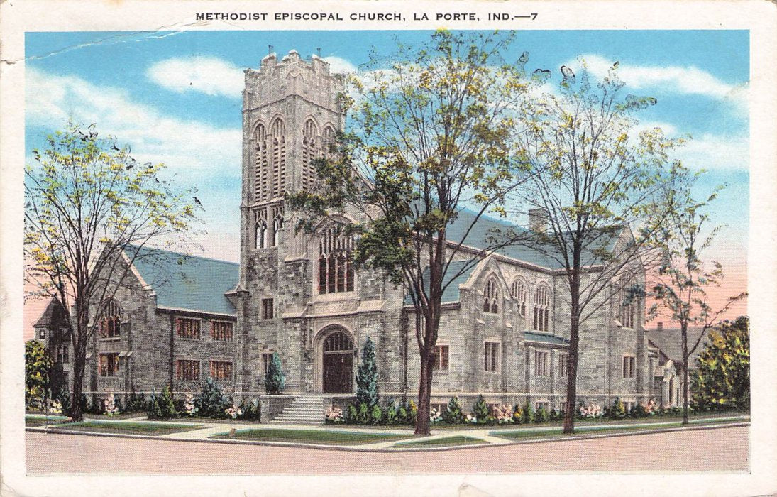 Kingsbury 1932 4-bar on post card, view of La Porte Episcopal Church