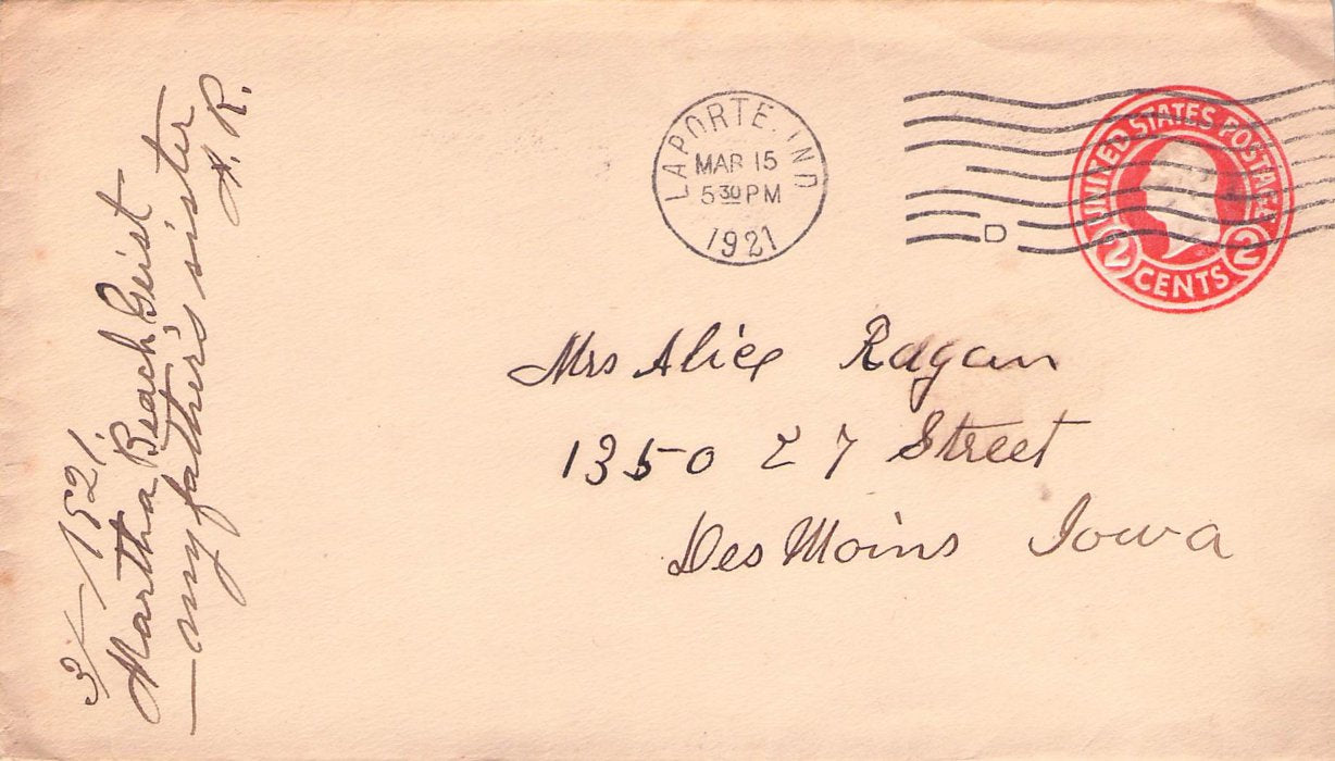 La Porte 1909 date-out duplex on cover; 1921 machine cancel on cover; 1939 machine cancel on cover with Deluxe Products Corp. corner; 1970 machine cancel on cover.