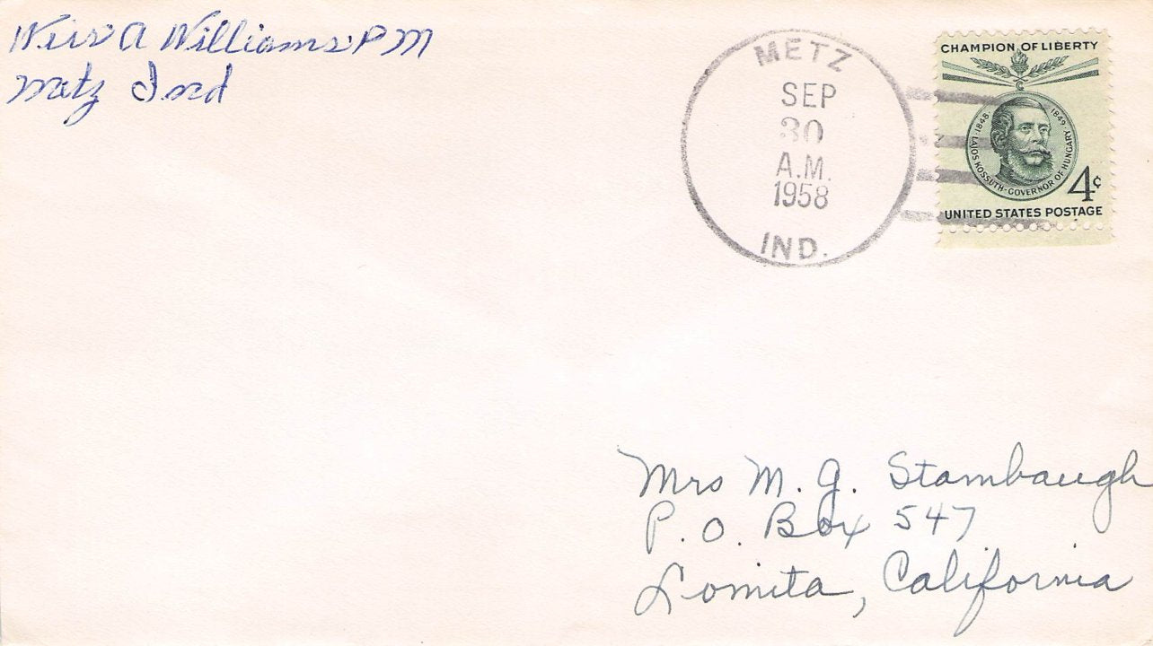 Michigan City 1870s cds on cover to Indianapolis; 1920 Flag Cancel on cover, “Chicago Lake Shore and South Bend Railway Company” corner; 1973 machine cancel on cover