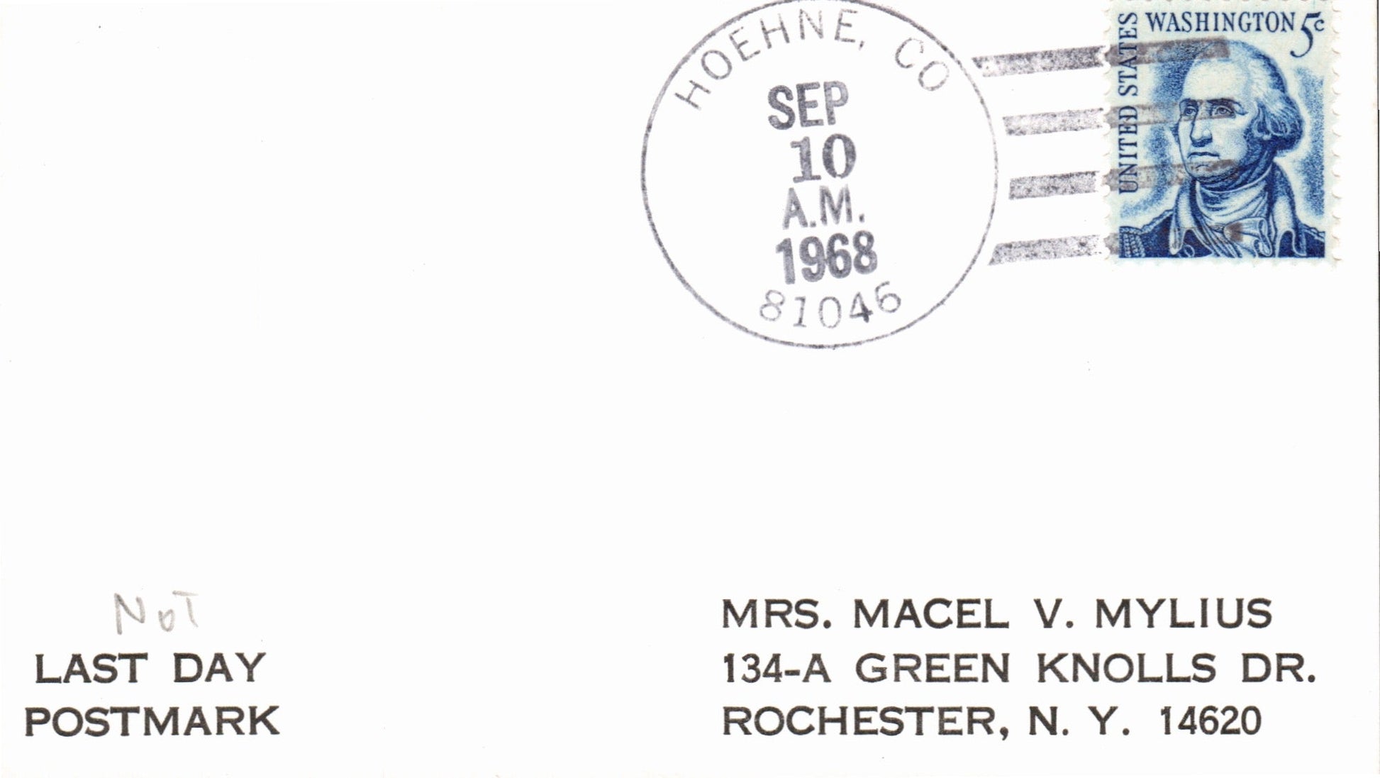 Hoehne 1968 4-bar on 3x5 card, PM autograph and closing rescind date on back