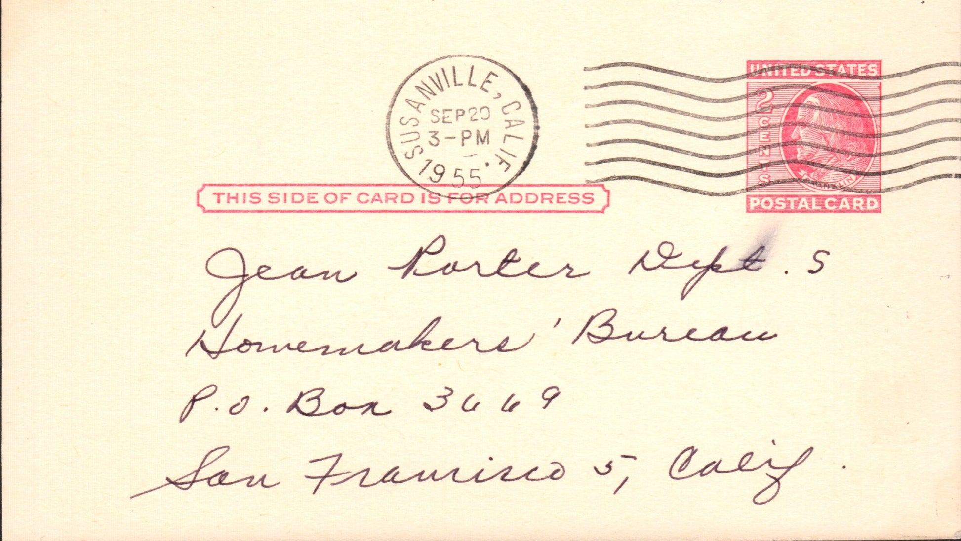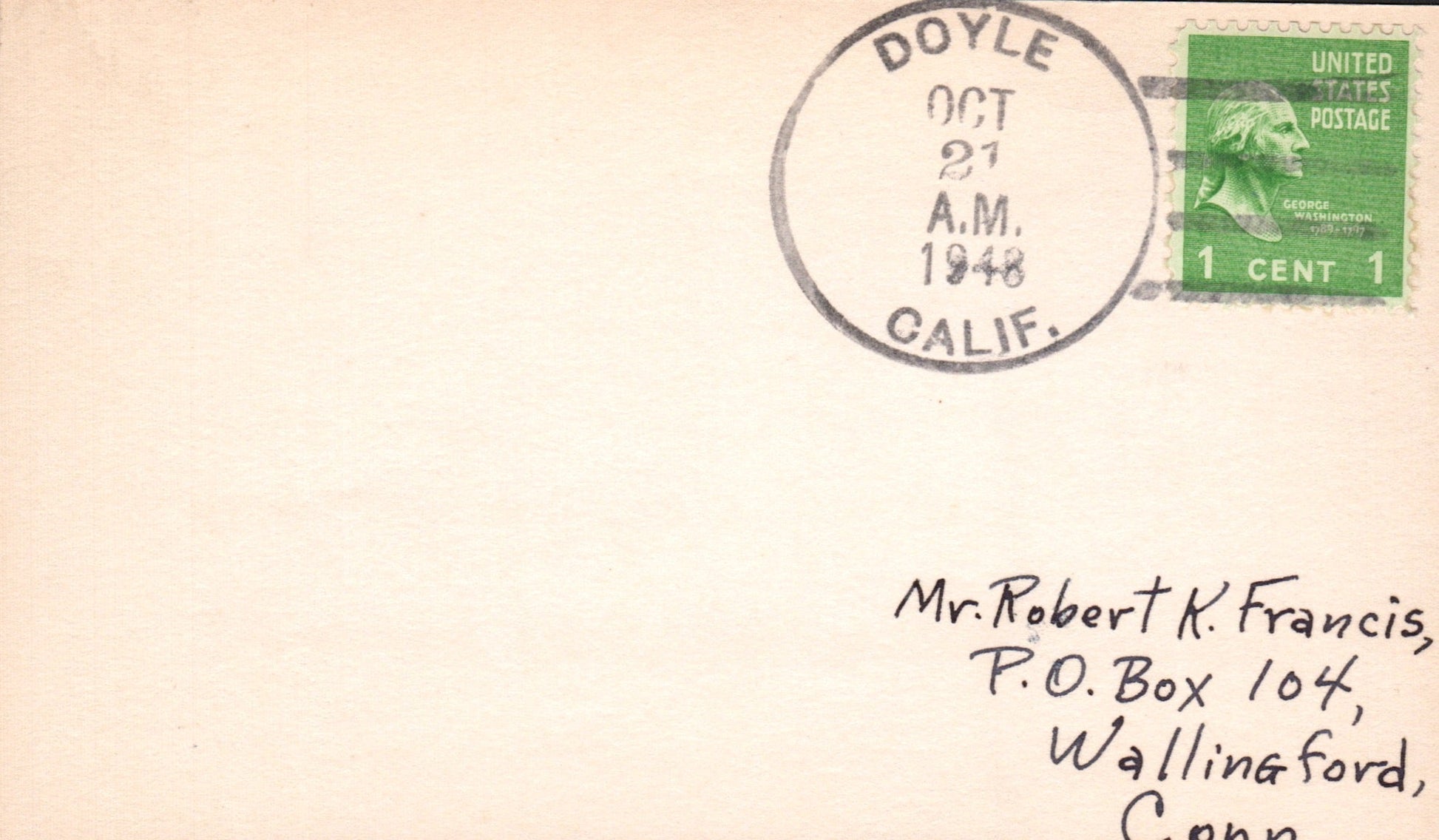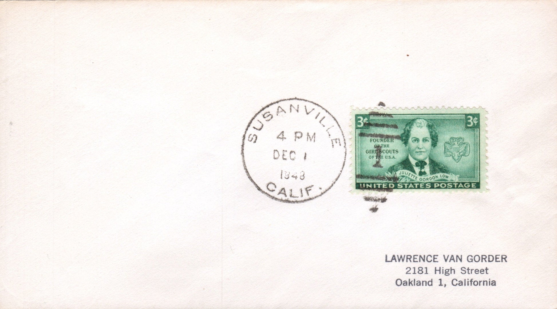 - Susanville 1889 cds on cover; 1948 duplex on cover; 1955 machine cancel on Postal Card