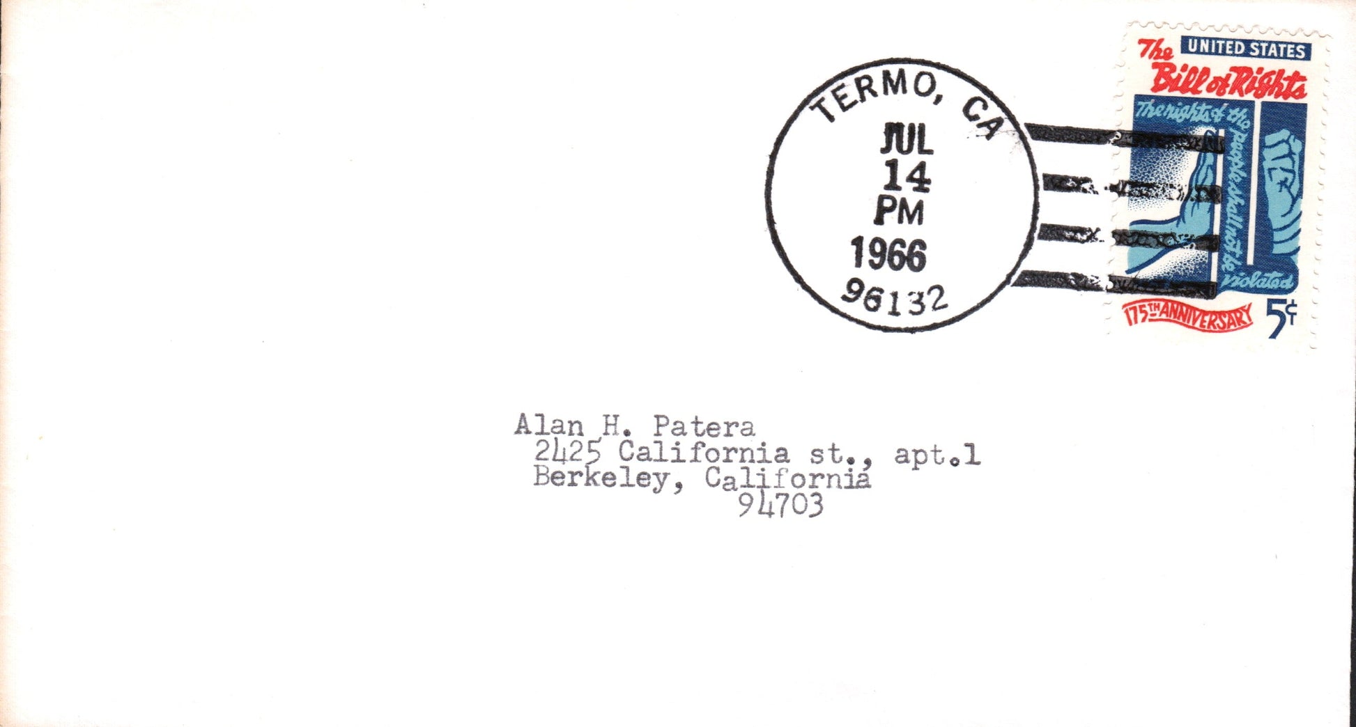 - Milford 1888 cds on cover, Sacramento Rec’d backstamp; 1966 4-bar on cover