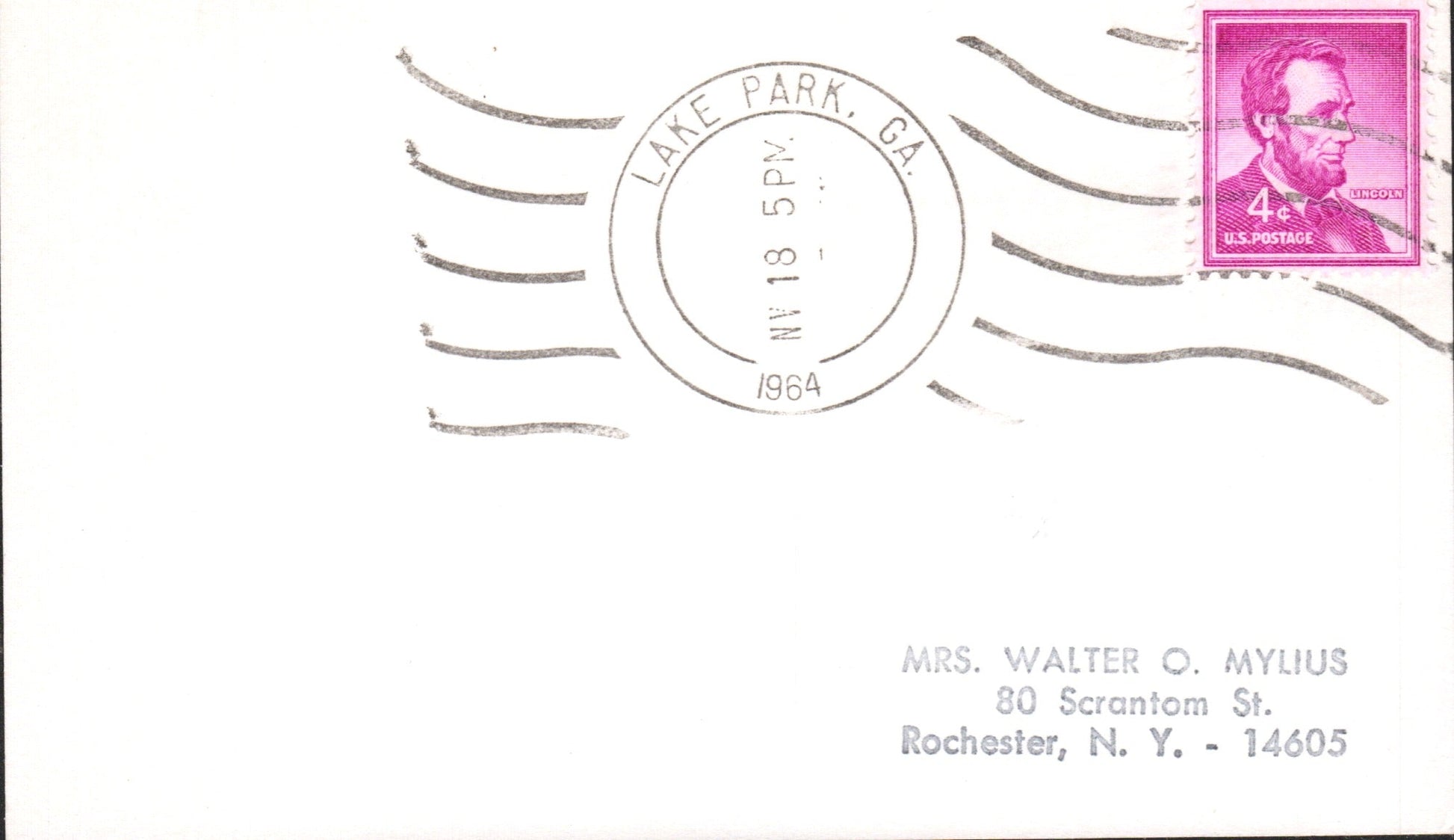 Valdosta 1939 machine cancel on post card; 1964 machine cancel on post card