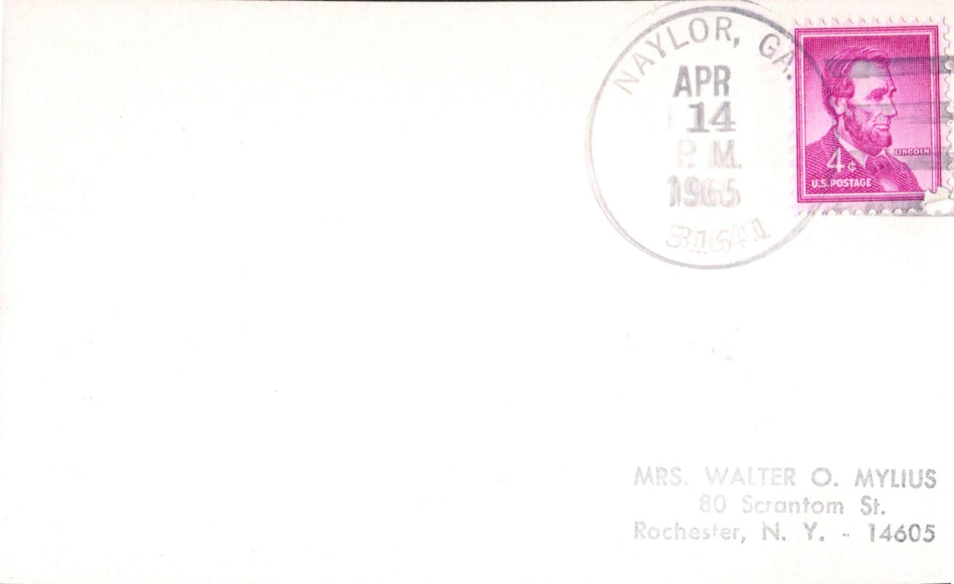 Naylor 1965 4-bar on 3x5 card, PM autograph on back