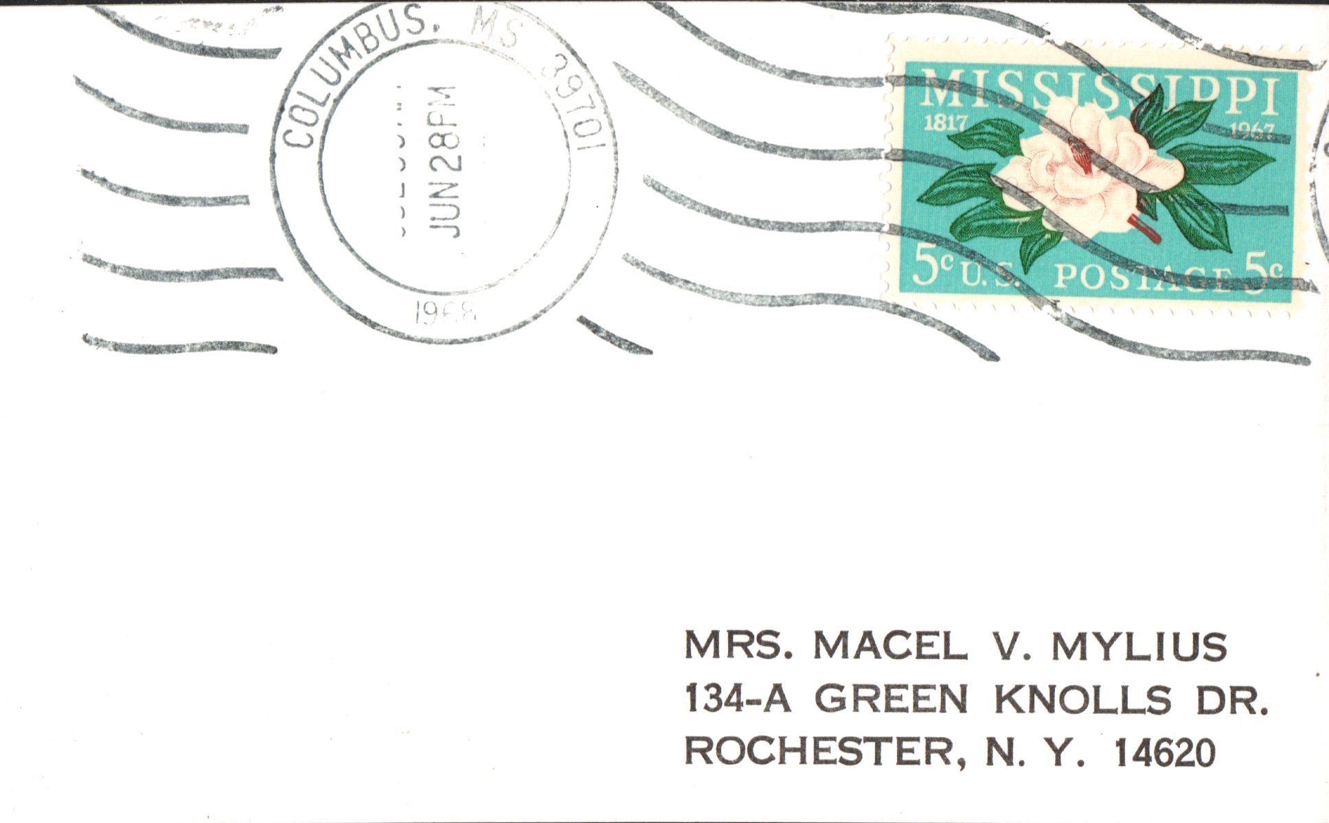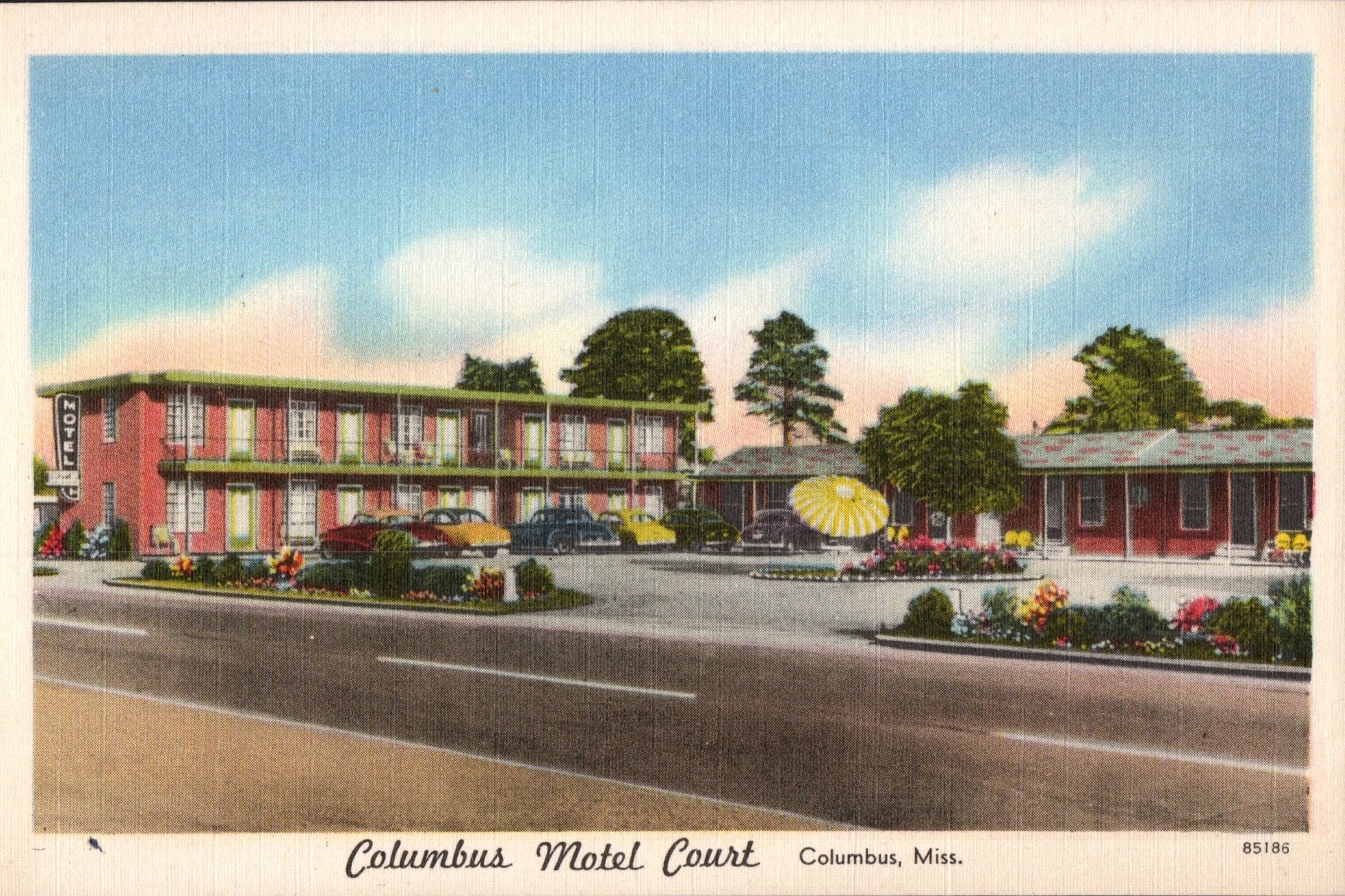 Post cards: Columbus Motel Court” [linen]; Mallard Motel [chrome]; High School [c.1930]; Mississippi State College for Women [3 chrome cards]; First Baptist Church [c.1930]; Gatchell Home, 1829 [chrome]; Shadowlawn, 1860 [chrome]; Columbus & Greenville RR locomotive [chrome]