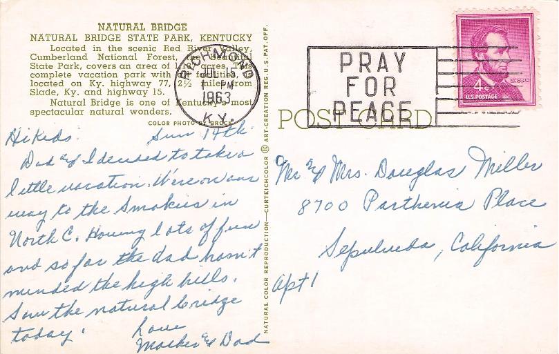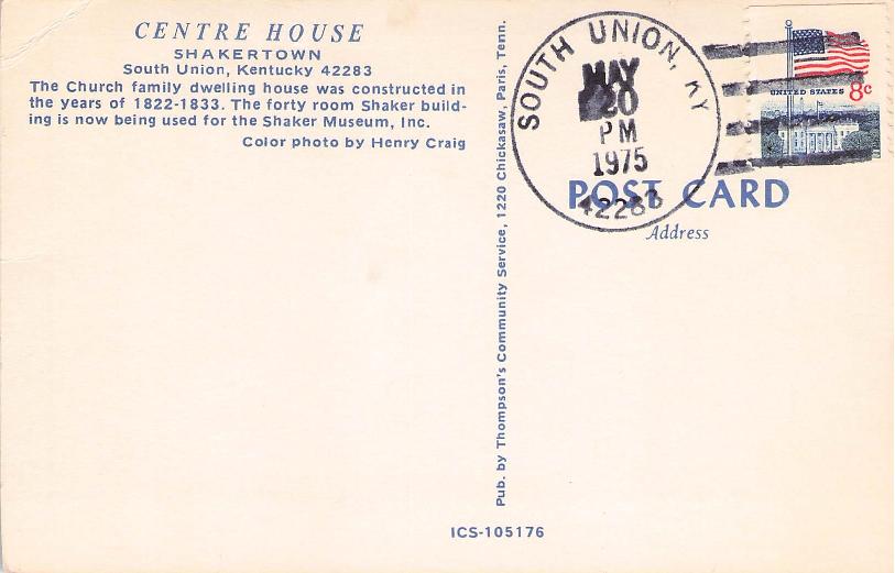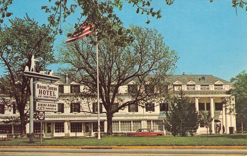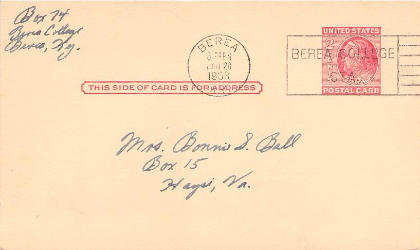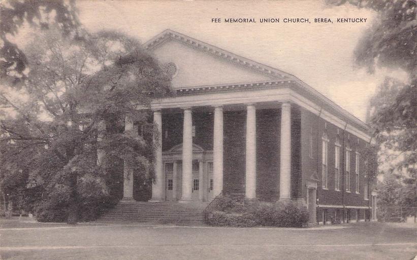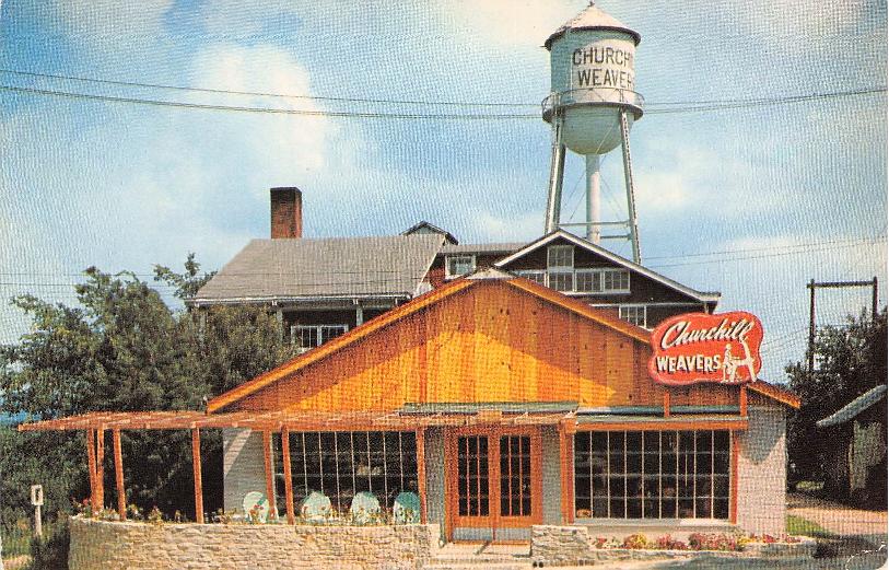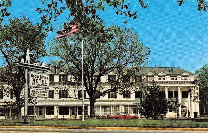 Post cards: Boone Tavern 2 chrome views; Log House Sales & Museum [chrome]; Churchill Weavers bldg.; Memorial Union church [B&W]