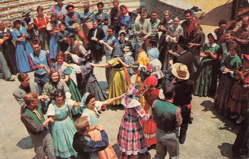 Post card: Draper Memorial bldg.; Paul Green’s Wilderness Road dancing