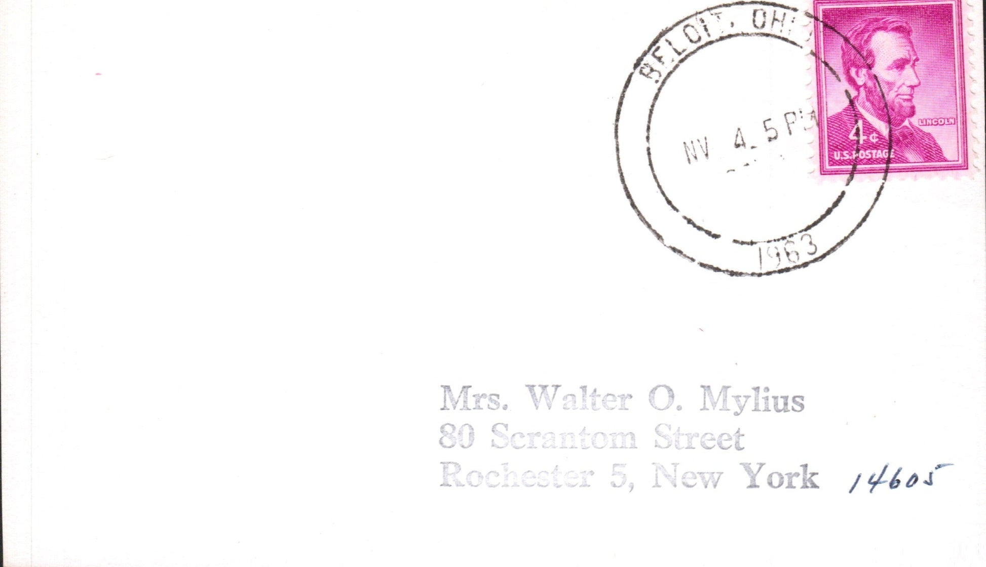 Berlin Center 1963 duplex on 3x5 card, PM autograph on back