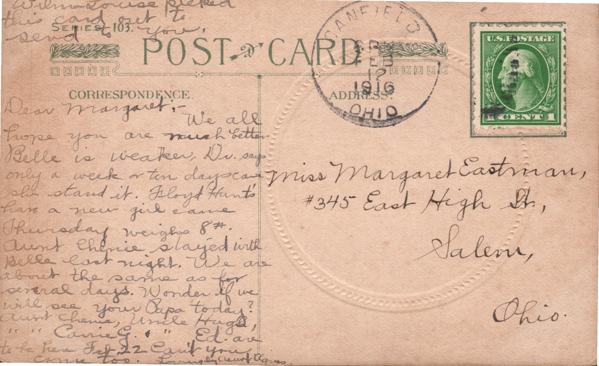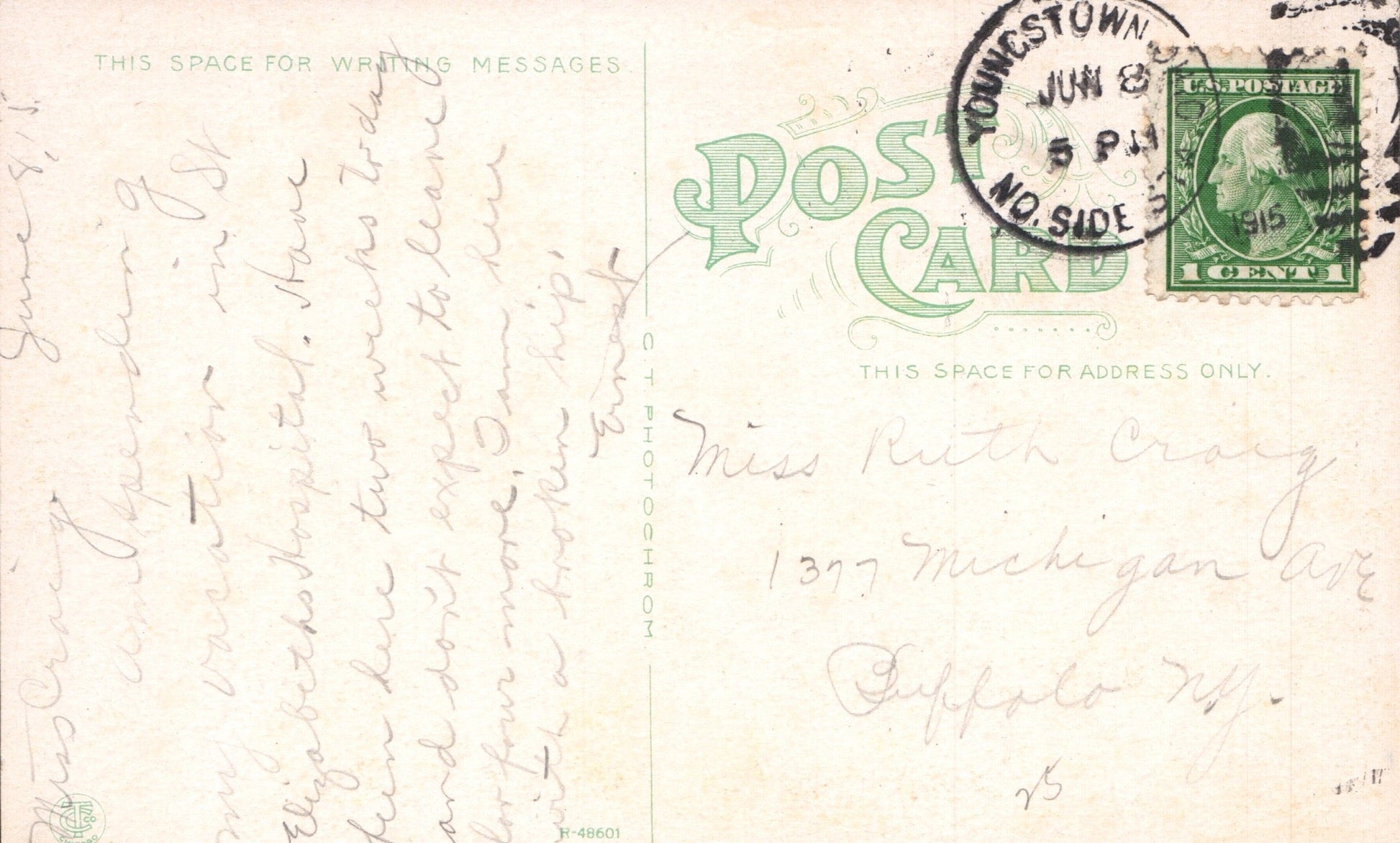 North Side Station 1916 date-out duplex on post card, view of St. Elizabeth’s Hospital