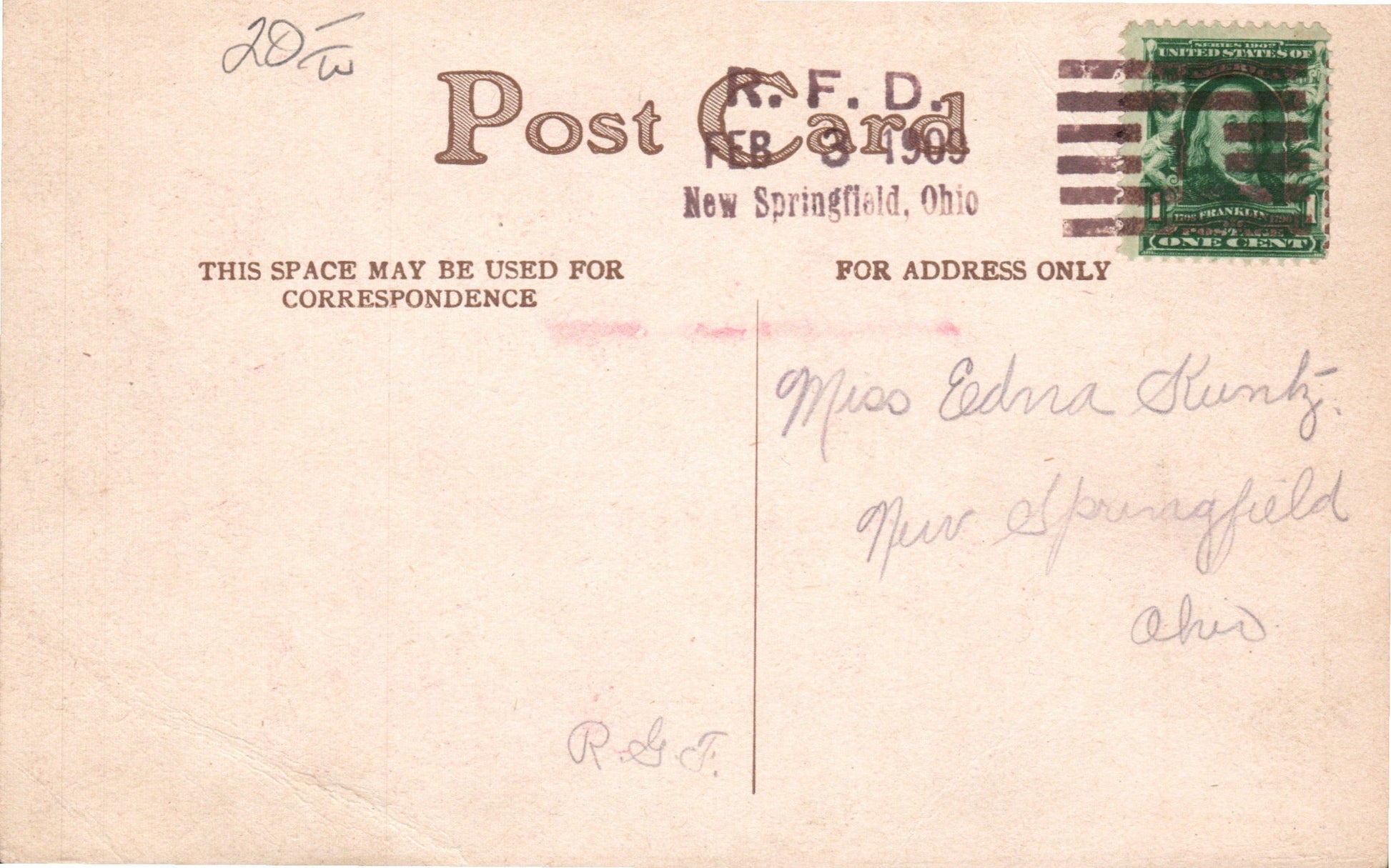 New Springfield Bold 1909 RFD 1 handstanp on post card
