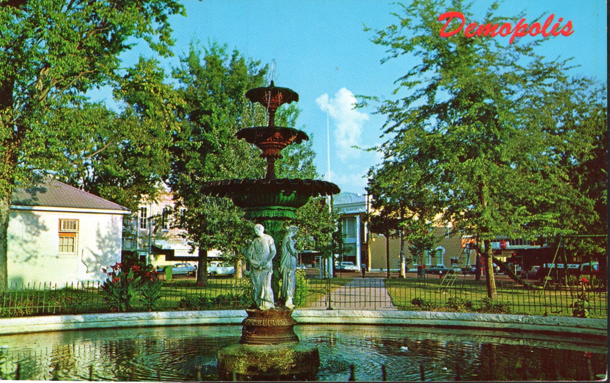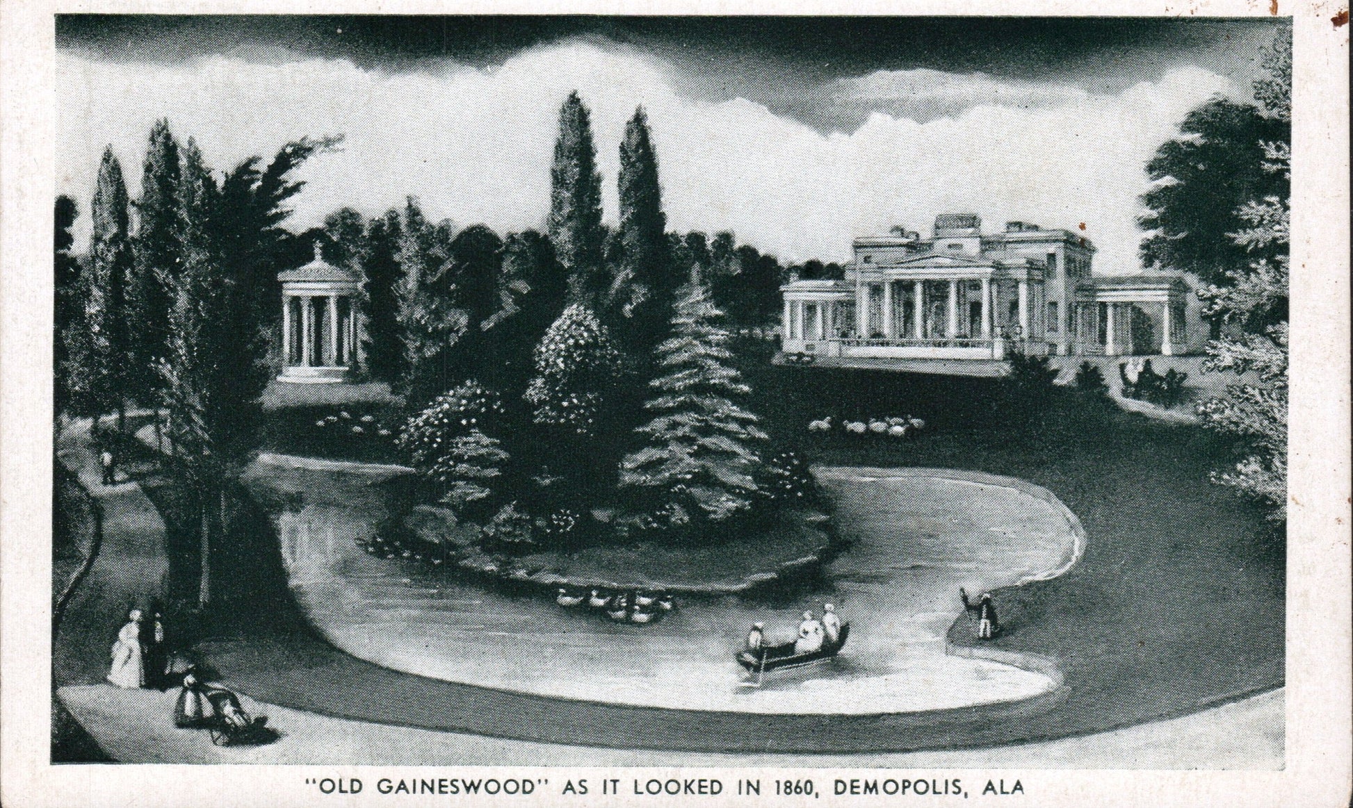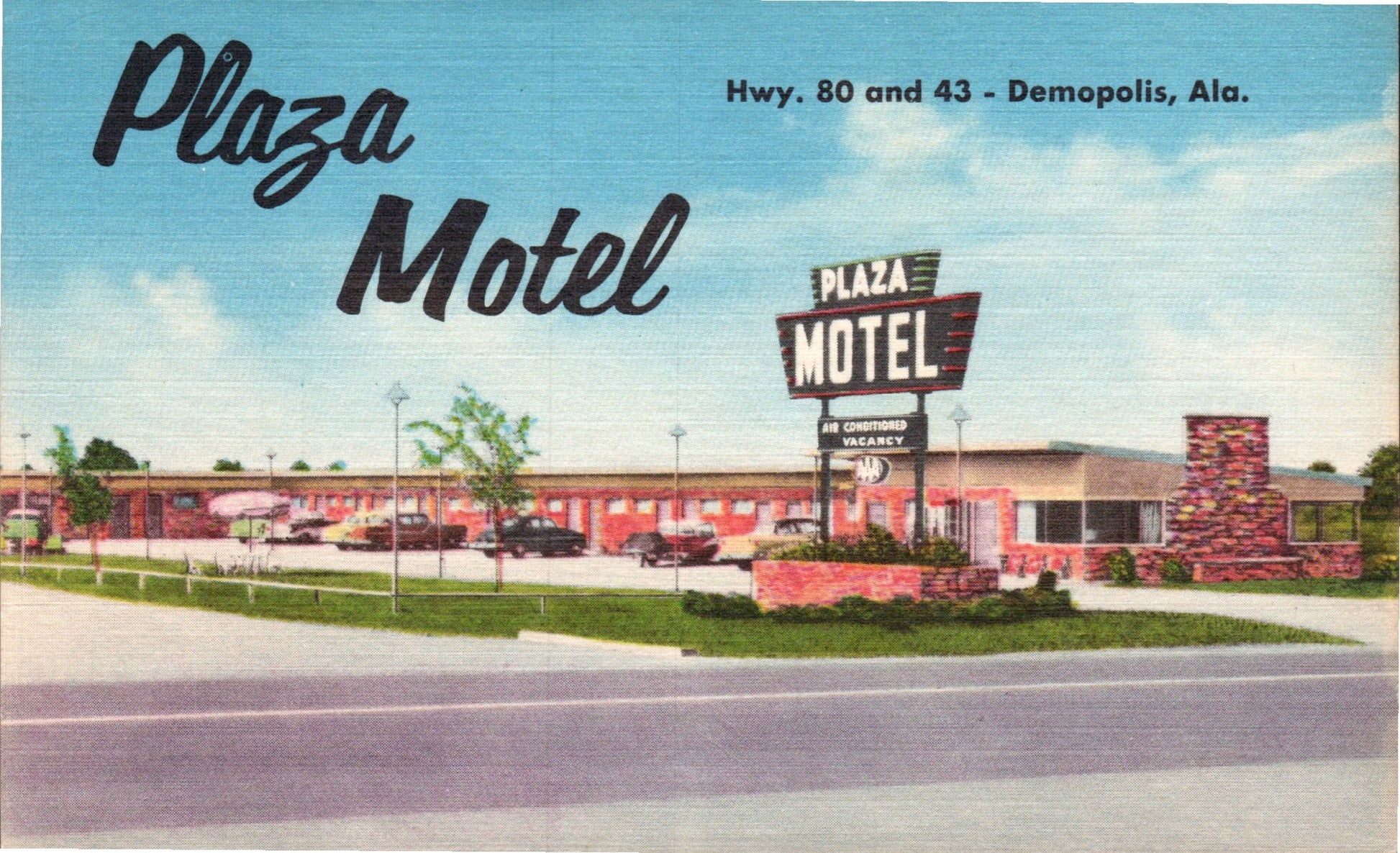 Demopolis Post cards: Plaza Motel [chrome]; Confederate Park [chrome]; “Old Gainesville as it looked in 1860”[B&W]