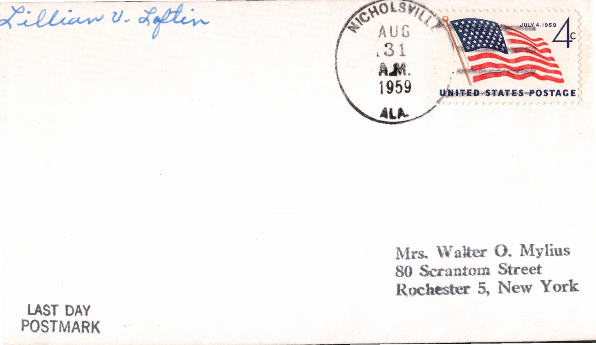 Nicholsville (1884-1959) 1959 4-bar on LD cover, PM autograph