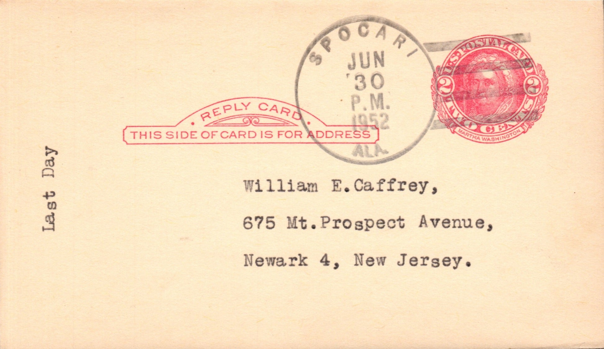 Spocari (1903/1952) 1952 4-bar on LD Postal Card