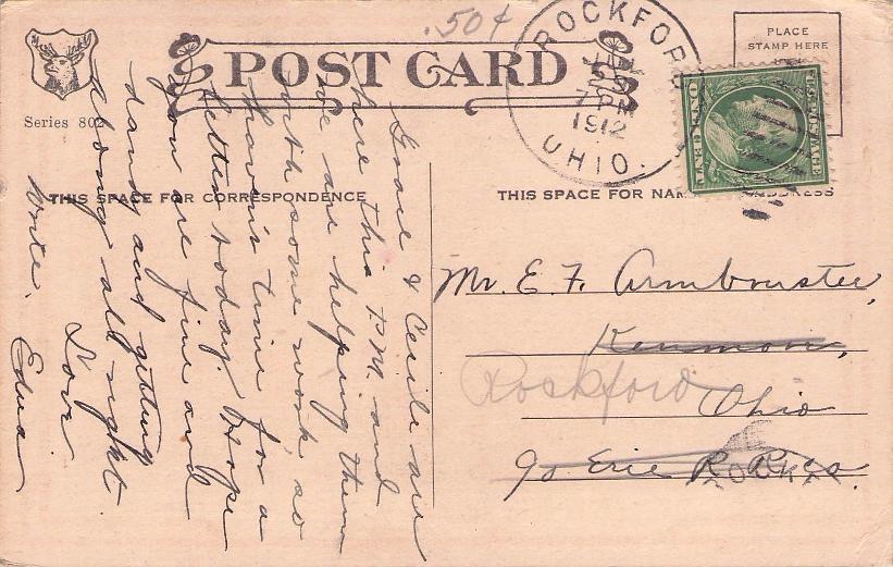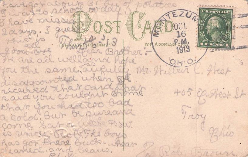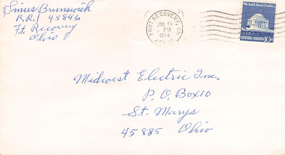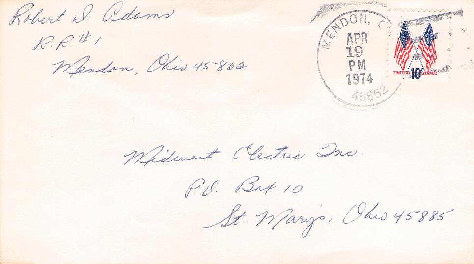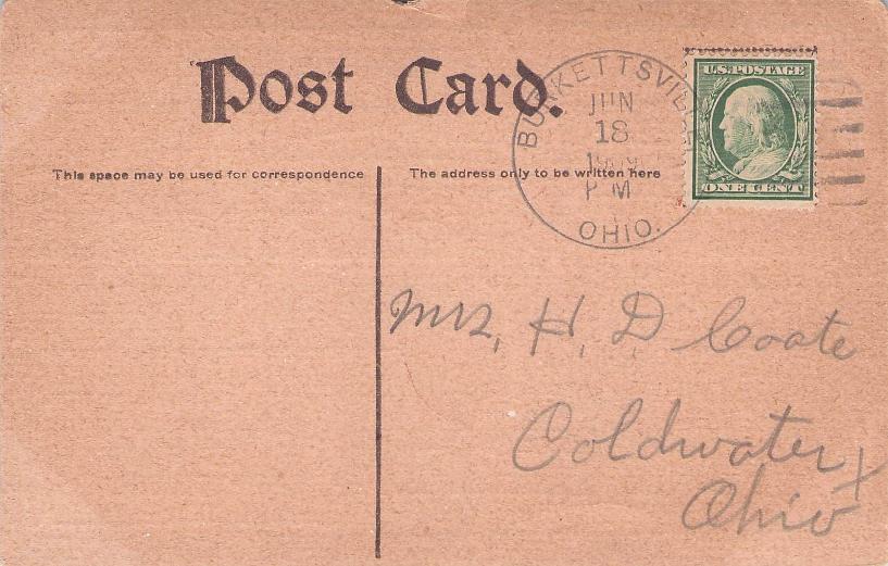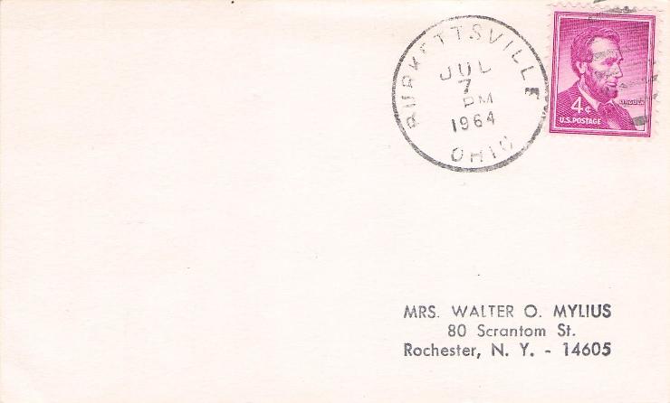 Burkettsville 1909 4-bar on post card; 1964 duplex on 3x5card