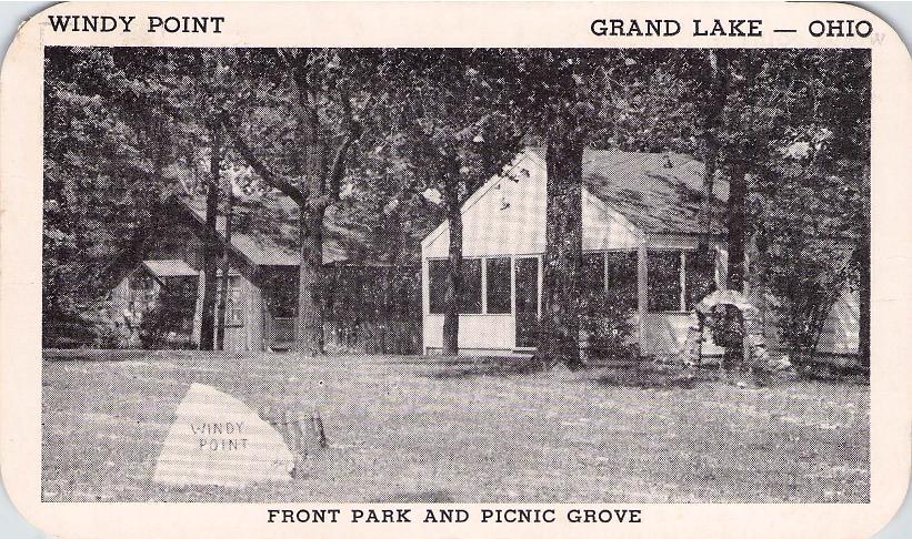 Post card: “Windy Point on Grand Lake” resort cottages [B&W]