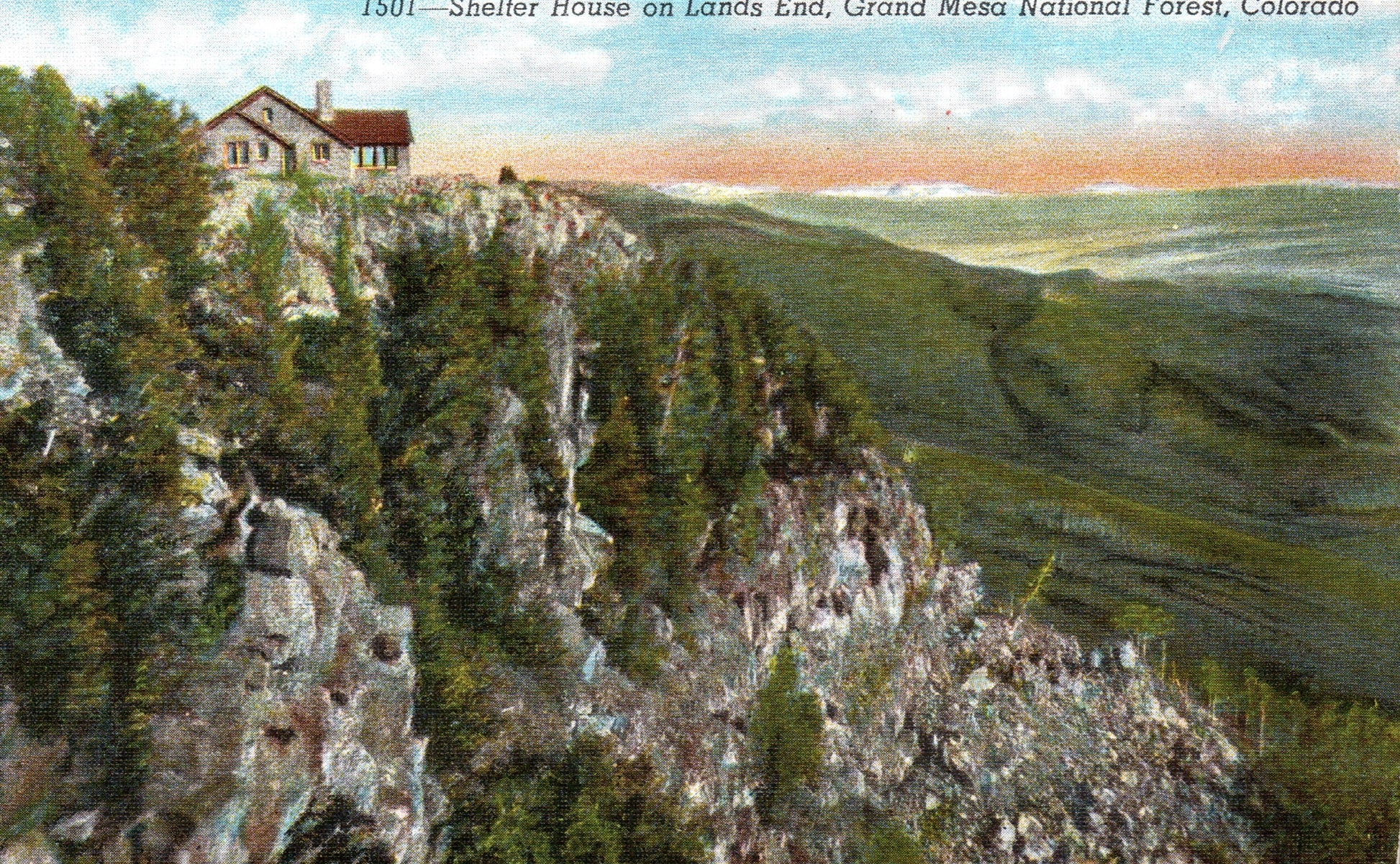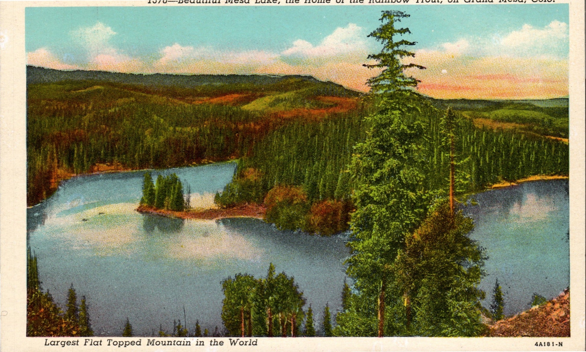 Grand Mesa Post cards: Shelter House [S#1501]; Mesa Lake [S#1570]; Mesa Lake [chrome]