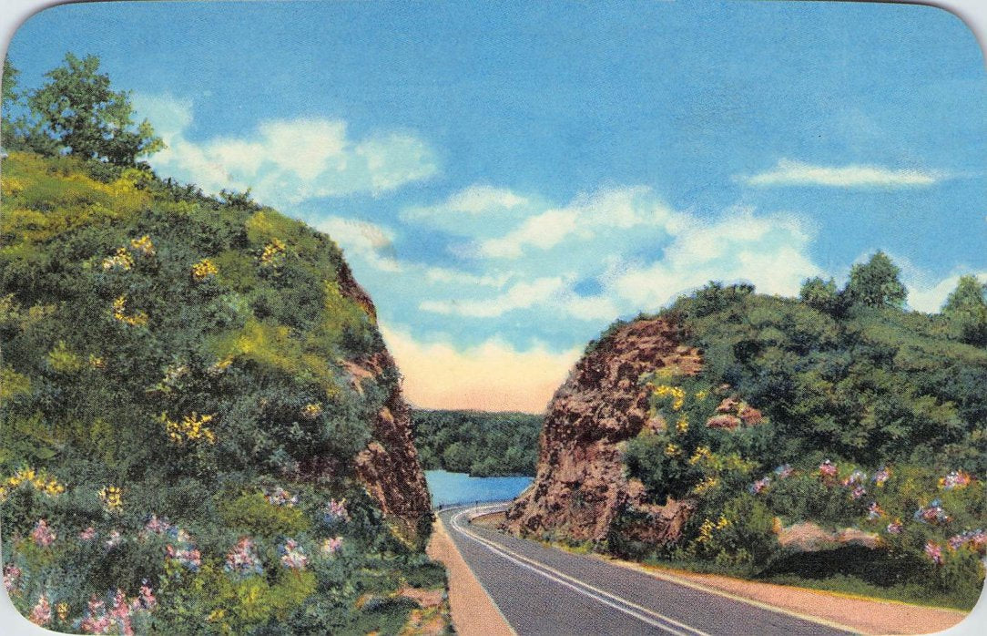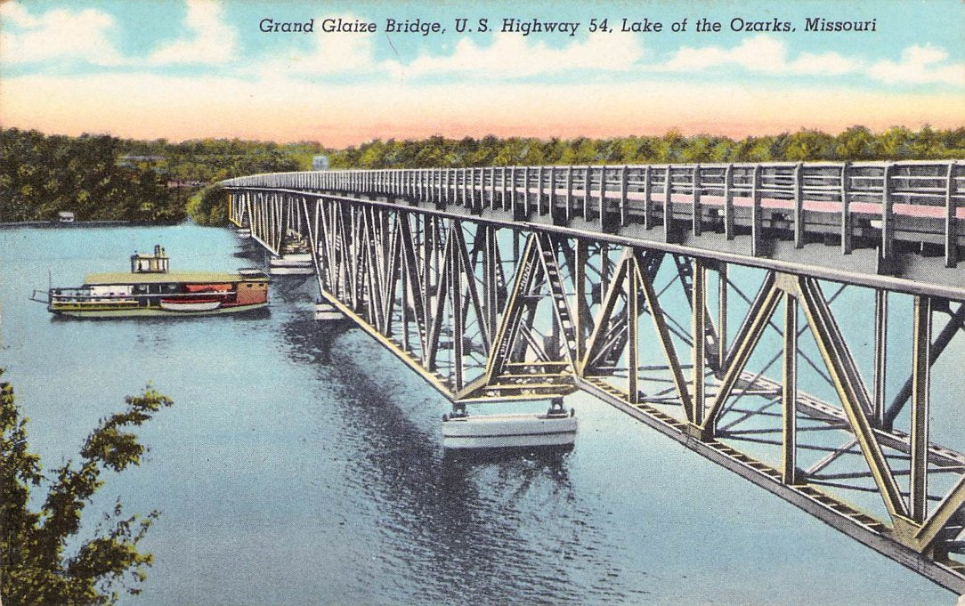 Lake of the Ozarks Post cards: Grand Glaize bridge [linen]; View from Horseshoe Bend Drive [linen]; “The Big Cut” [chrome]