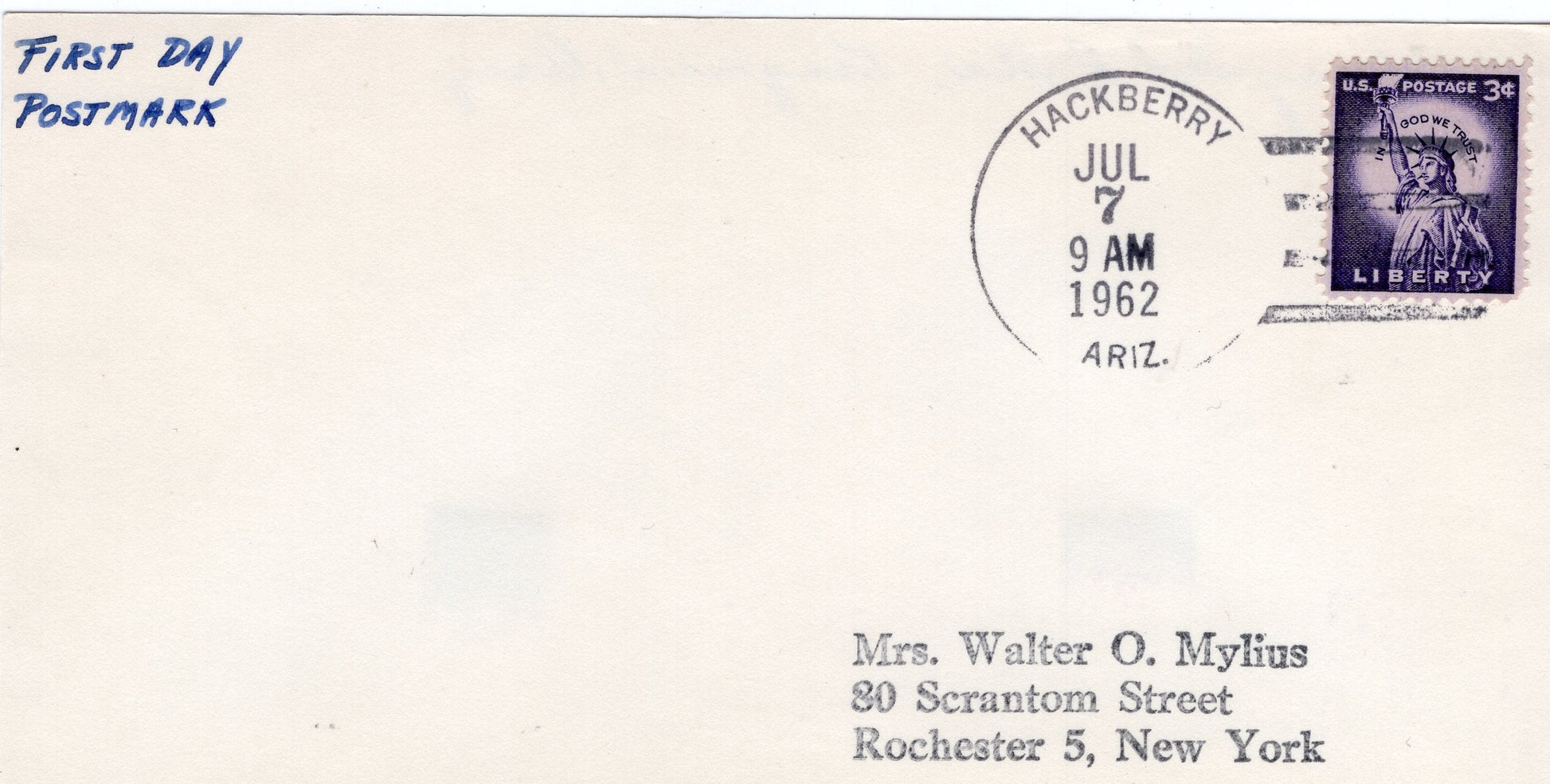 - Hackberry RB 1962 4-bar on cover, FD as Rural Branch