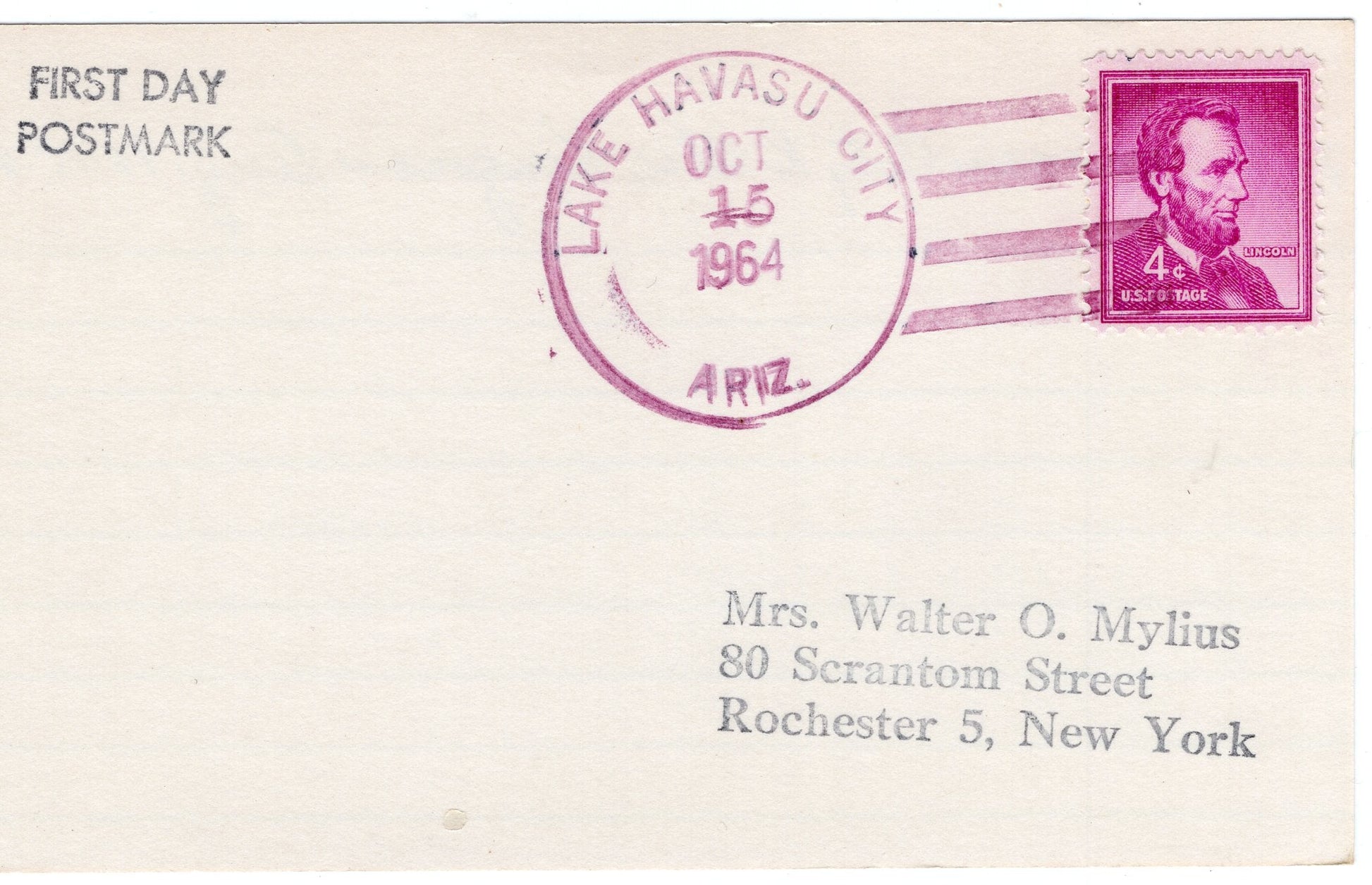 - Lake Havasu City 1964 4-bar on 3x5 card, FD as independent p.o.