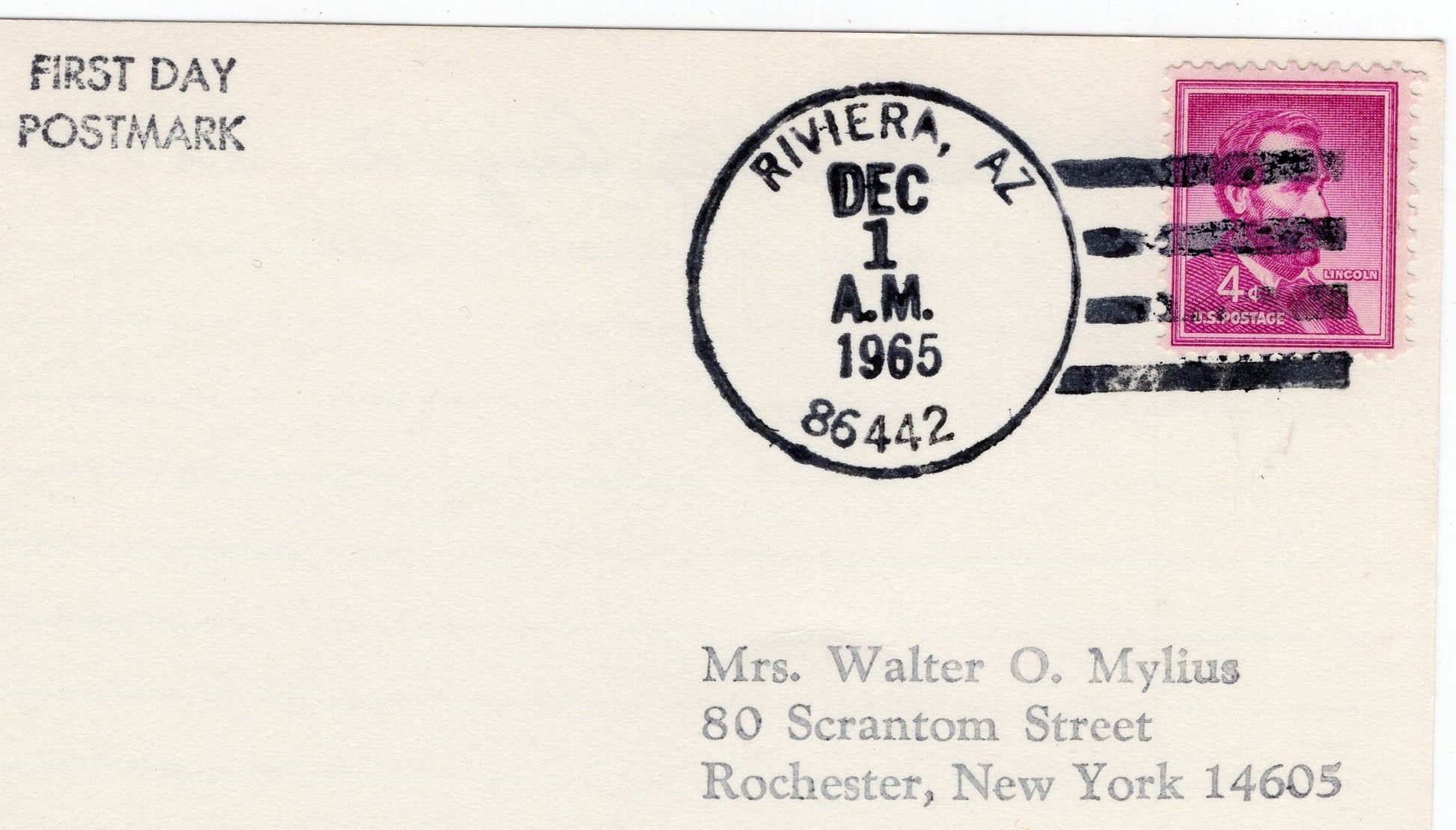 - Riviera RB 1965 4-bar on 3x5 card, FD of Rural Branch