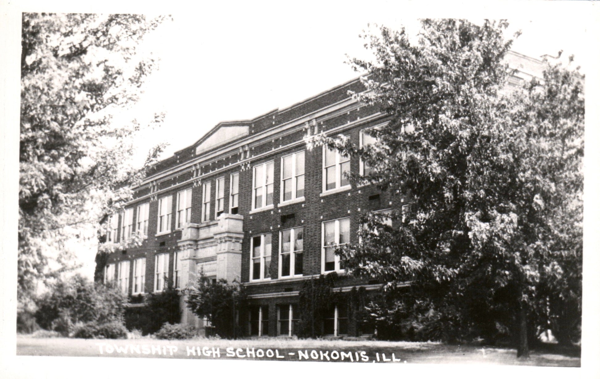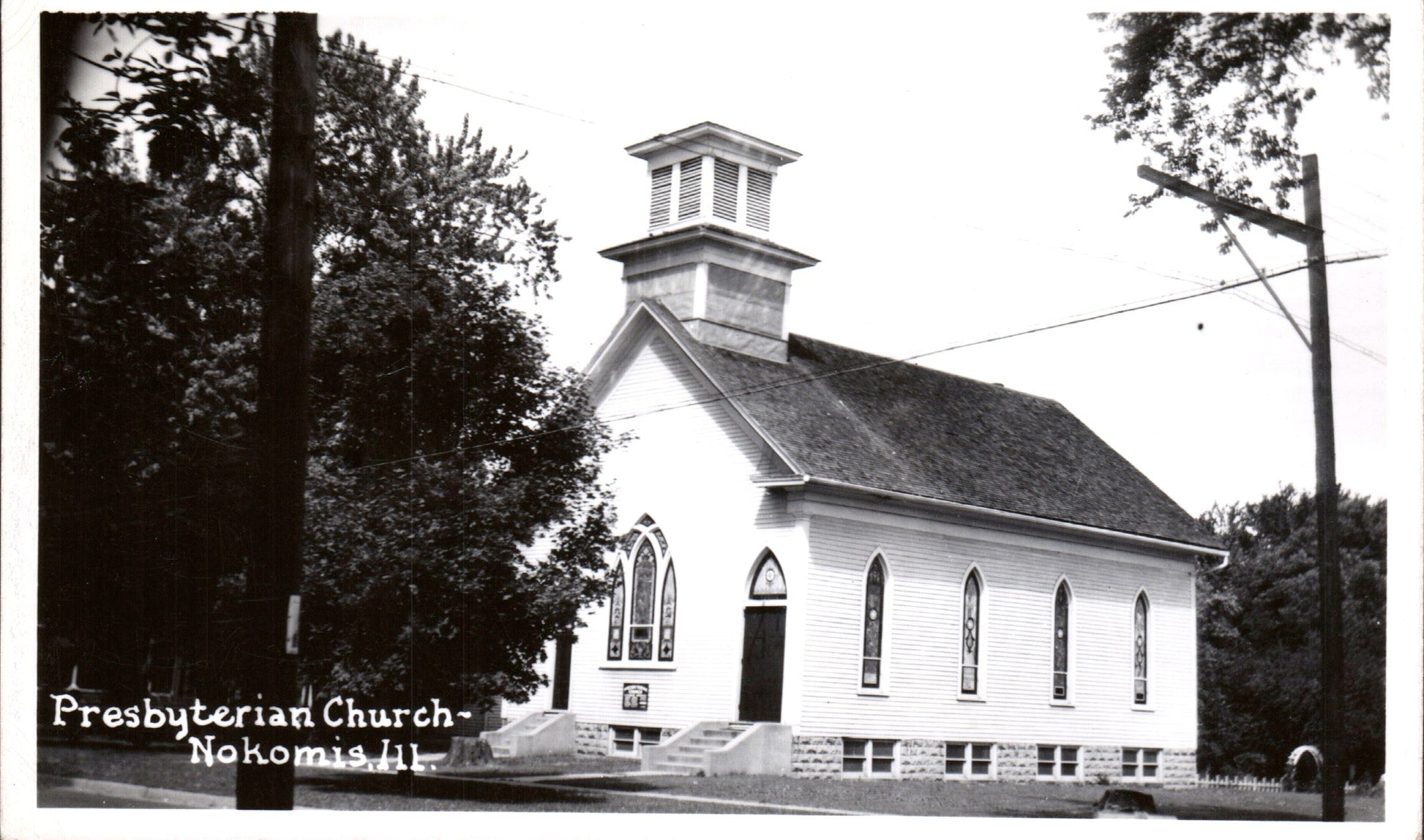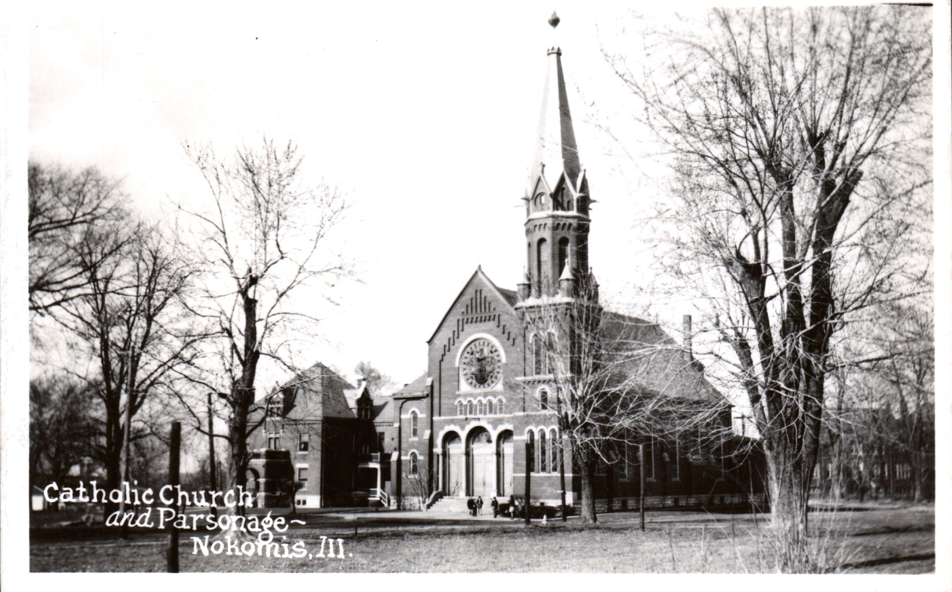 Nokomis Post cards: Catholic Church [real photo]; Presbyterian Church [real photo]; Township High School [real photo]