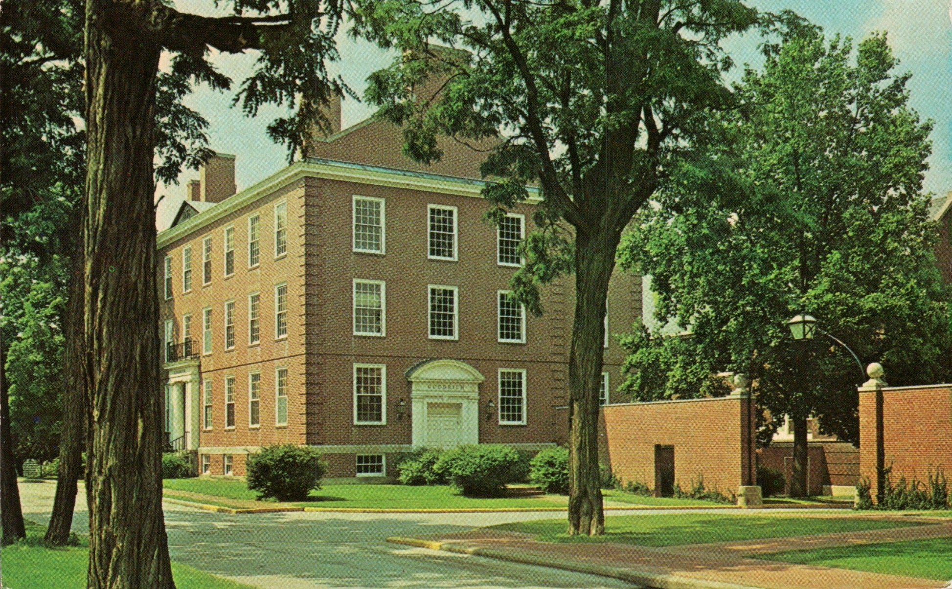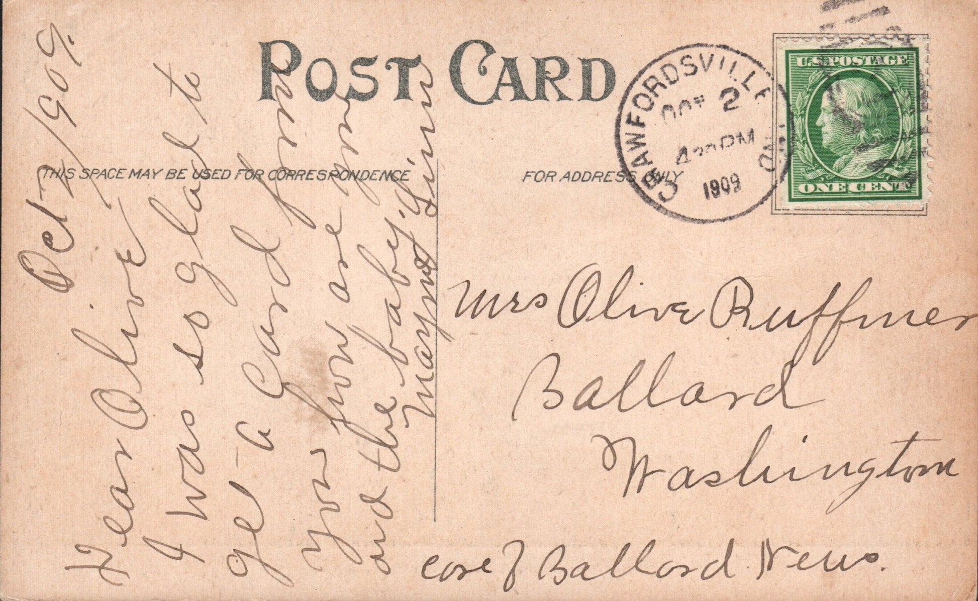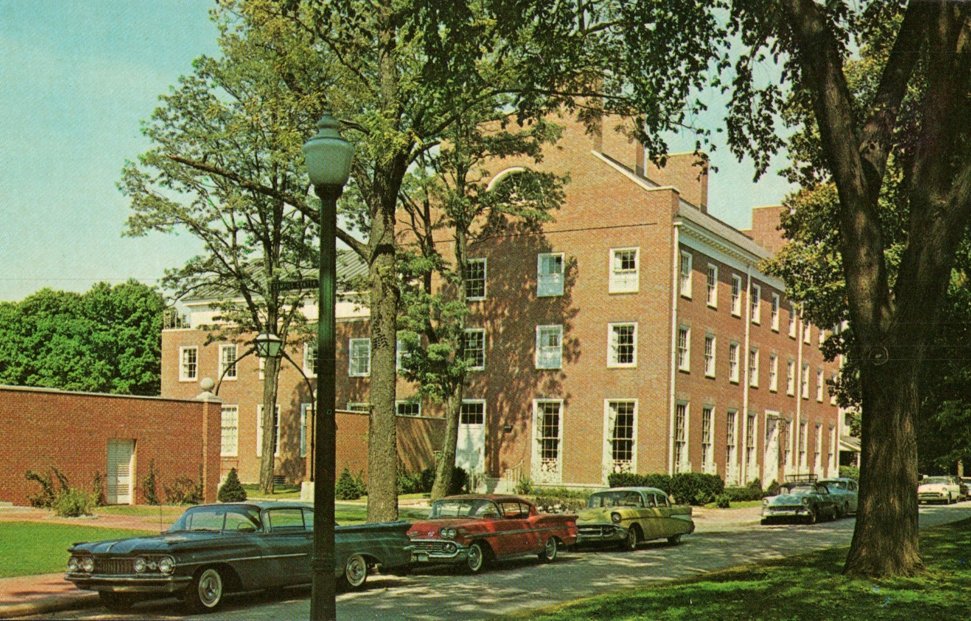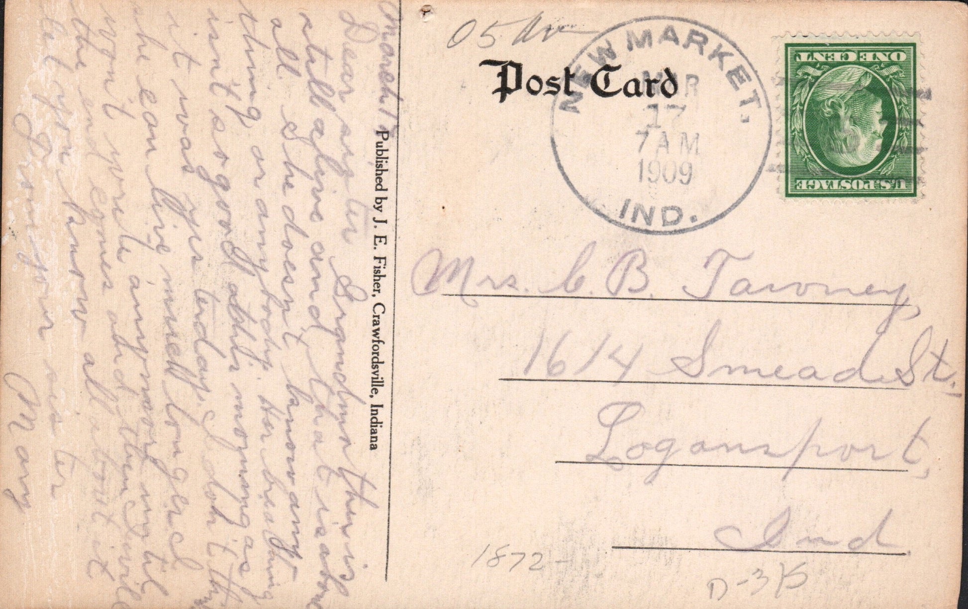 New Market 1909 Doane on post card, view of Gen. Lew Wallace Library