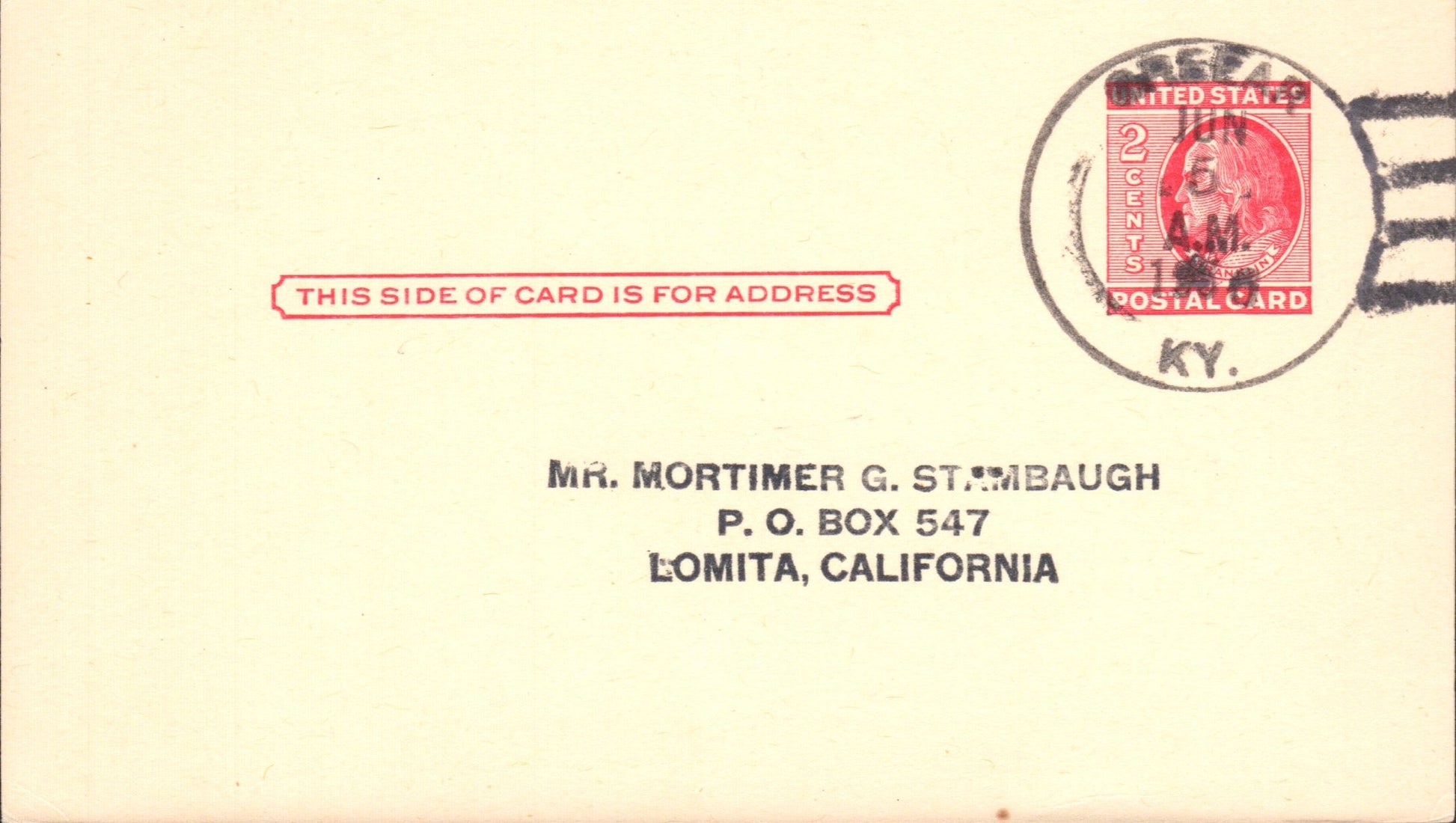 Greear (1915-1957) blurry 1956? 4-bar on Postal Card